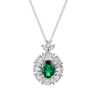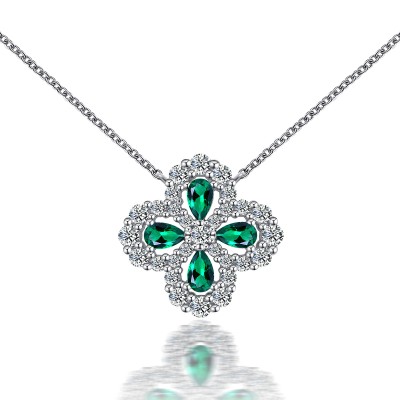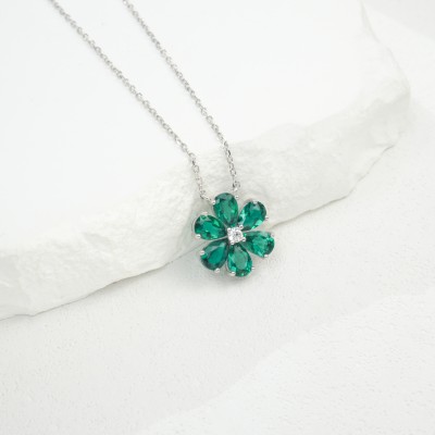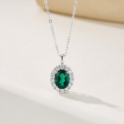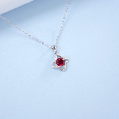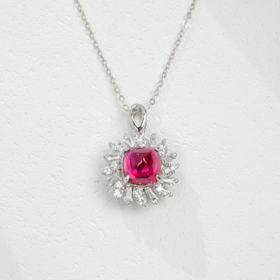 925 银培育红宝方形围镶项链 轻奢颈饰
