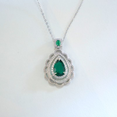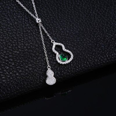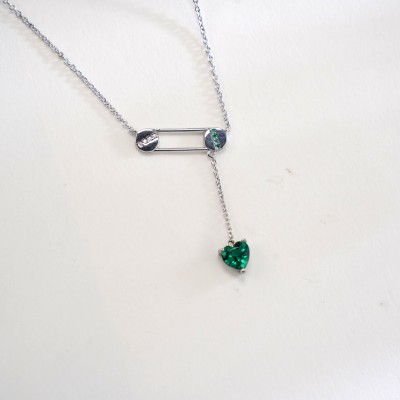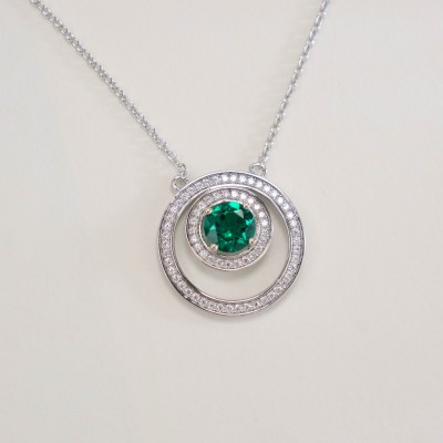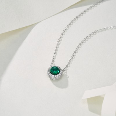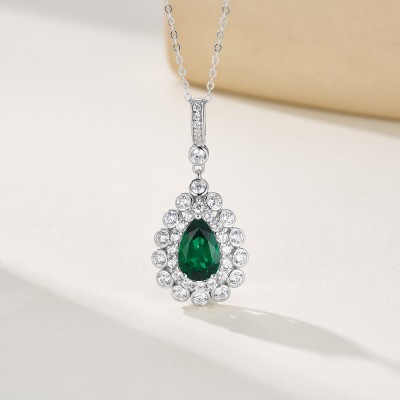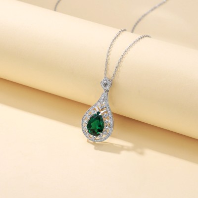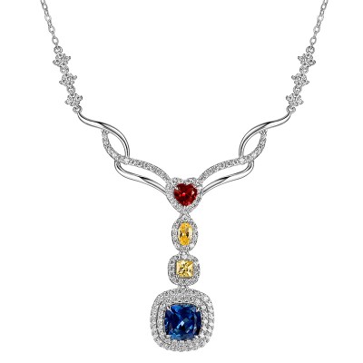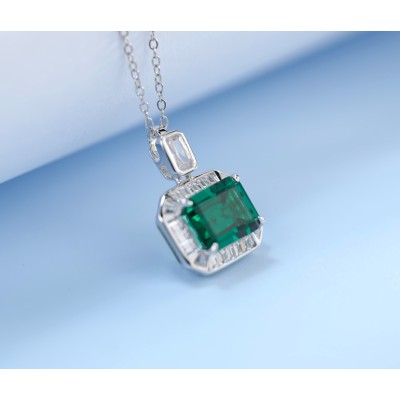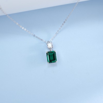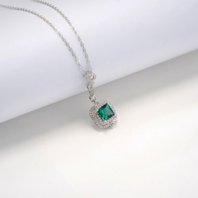 925 银培育红宝方形围镶项链 轻奢颈饰