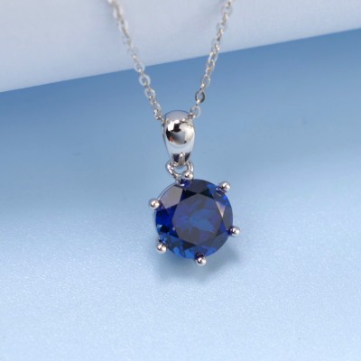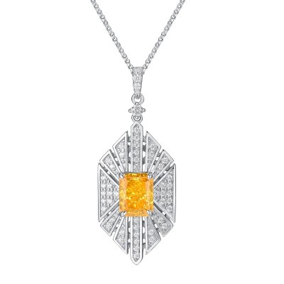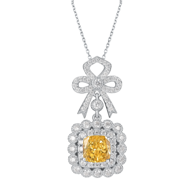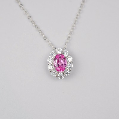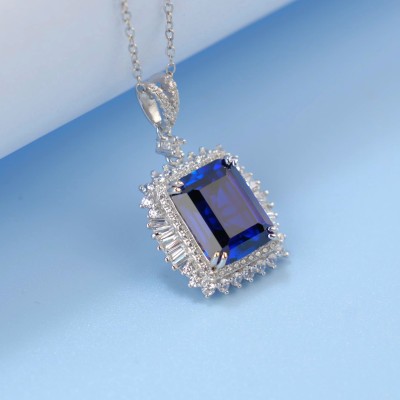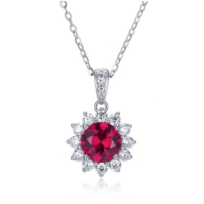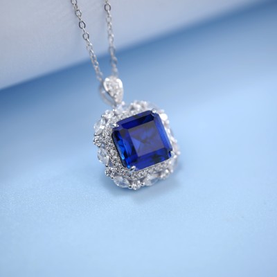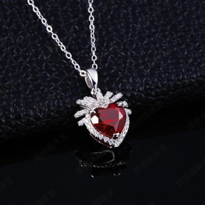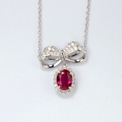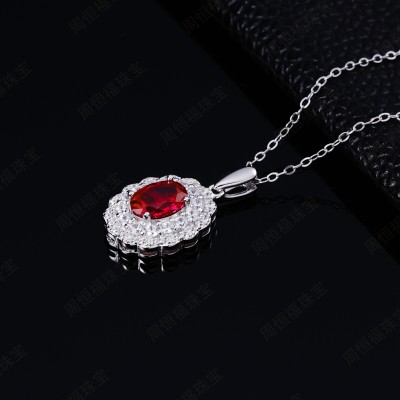 925 银培育红宝方形围镶项链 轻奢颈饰