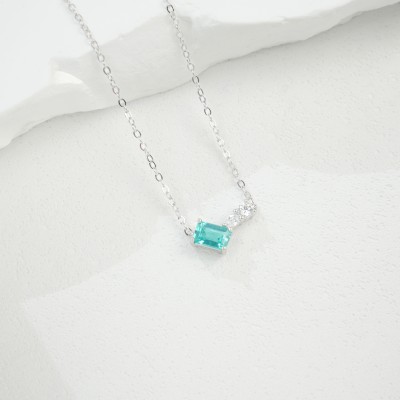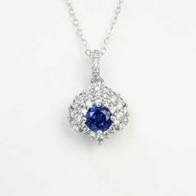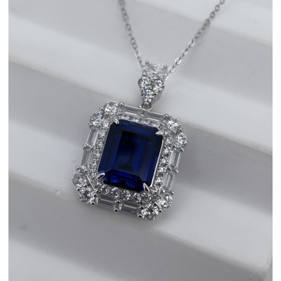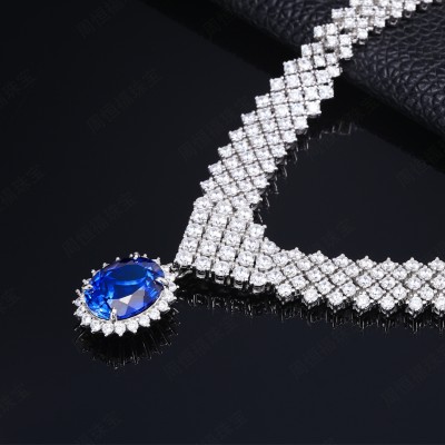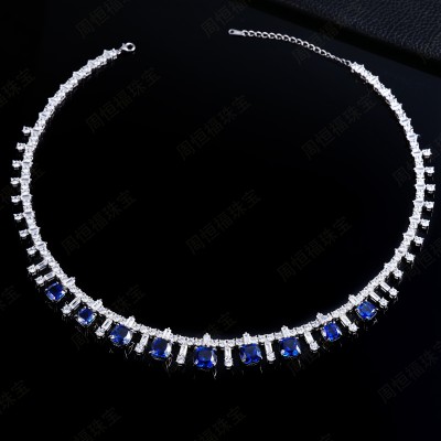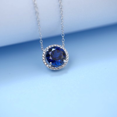 925银培育蓝宝项链
