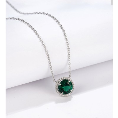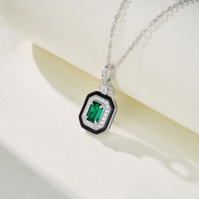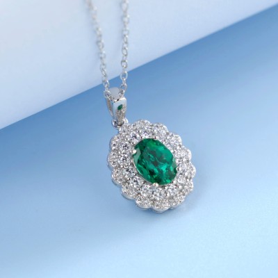925银培育祖母绿项链