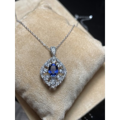 925银培育蓝宝项链