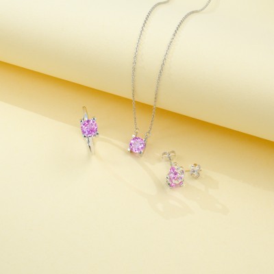 925 银培育红宝方形围镶项链 轻奢颈饰