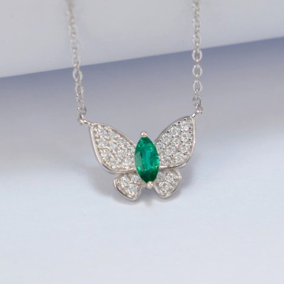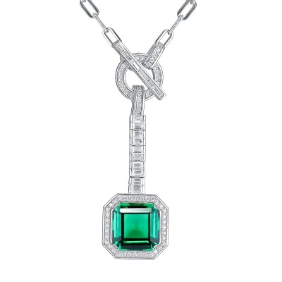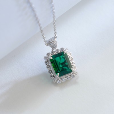 925银培育祖母绿项链