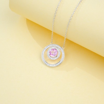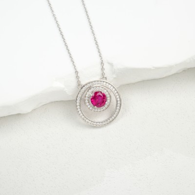 925 银培育红宝圆环项链
