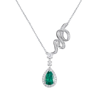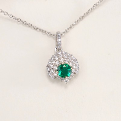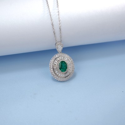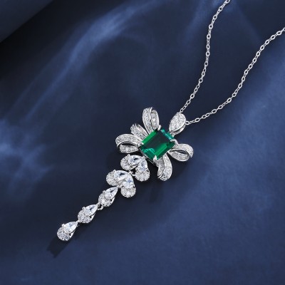 925银培育钻祖母绿灵动项链