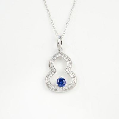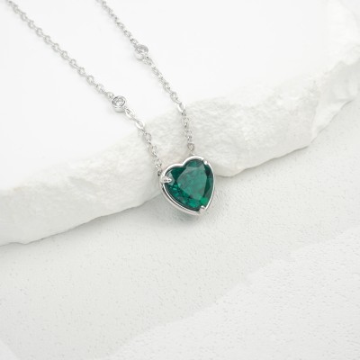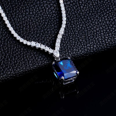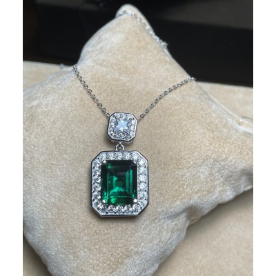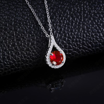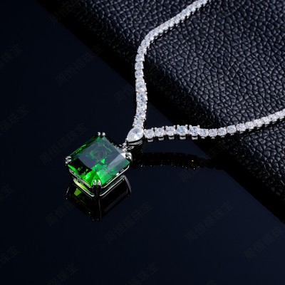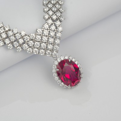 925 银培育红宝方形围镶项链 轻奢颈饰