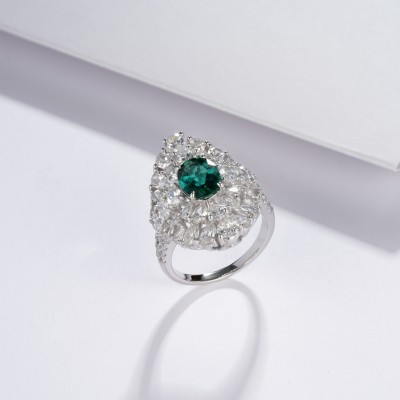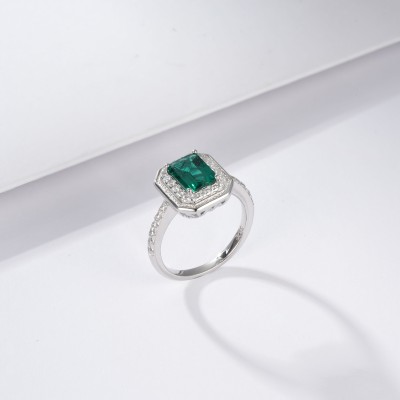 925银培育祖母绿戒指