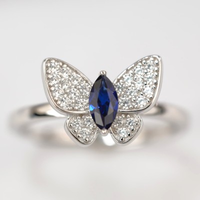 925银培育蓝宝戒指