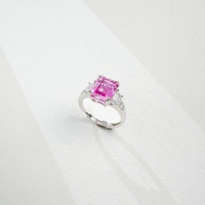 925 银培育帕帕拉恰粉蓝宝戒指