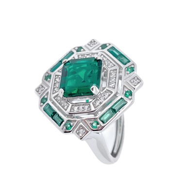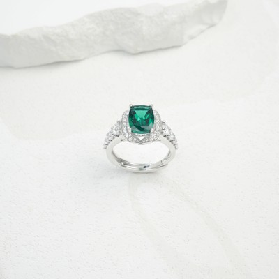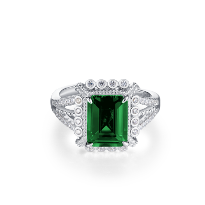 925银培育祖母绿戒指
