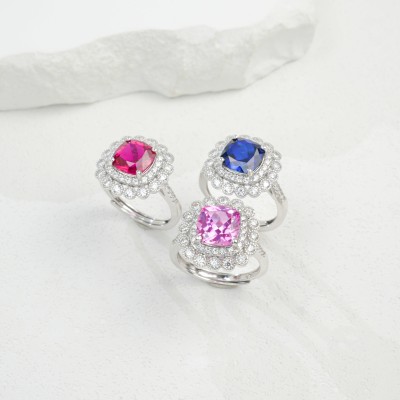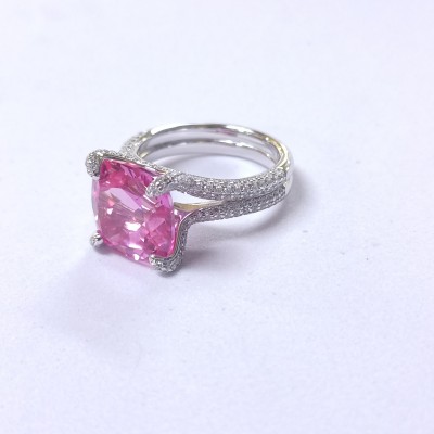 925银立方氧化锆粉色戒指