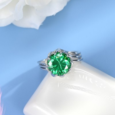 925银培育祖母绿戒指2CT