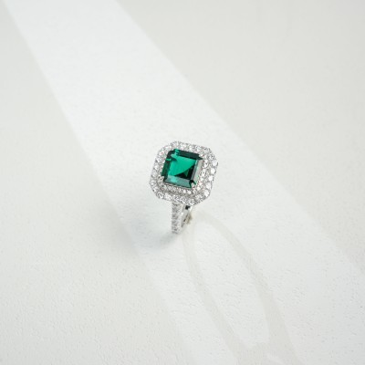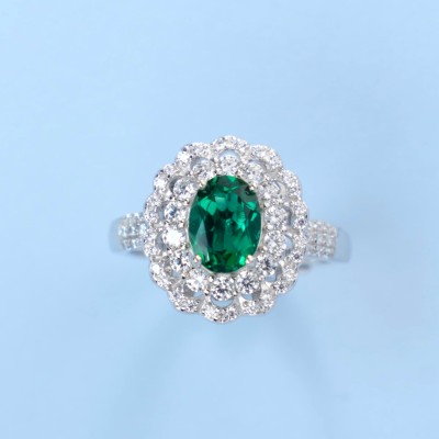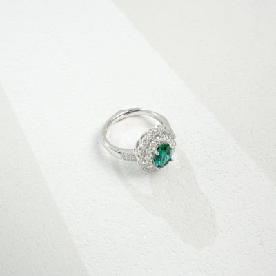 925银培育祖母绿戒指