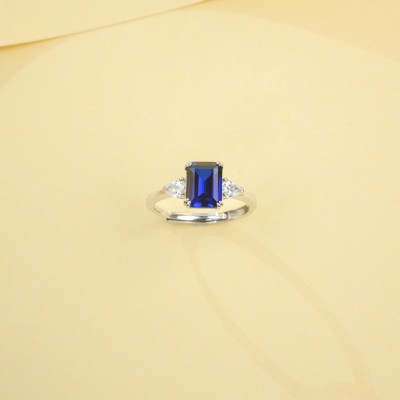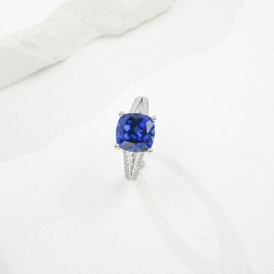 925银培育蓝宝戒指