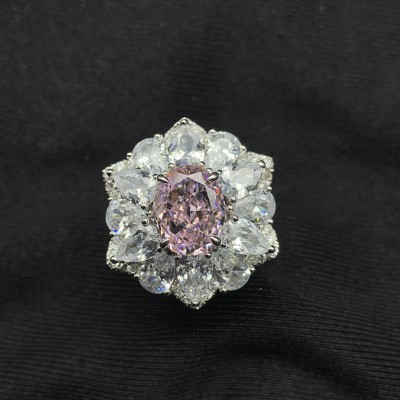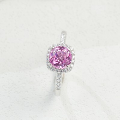 925银立方氧化锆粉色戒指