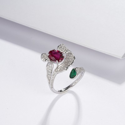 925银培育红宝戒指