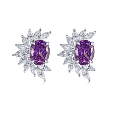 925银立方氧化锆紫色耳环