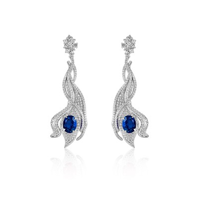 925银立方氧化锆蓝色耳环