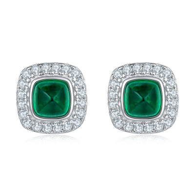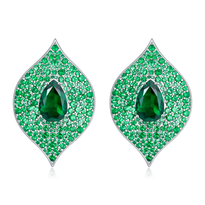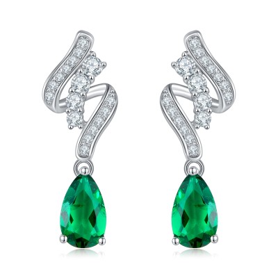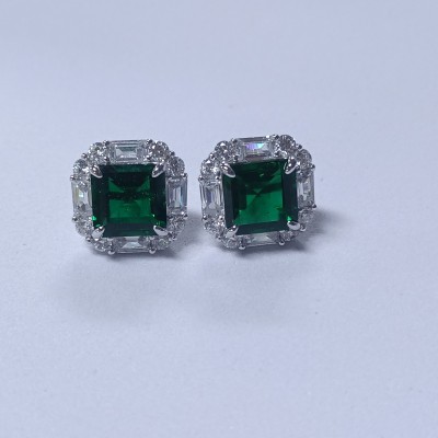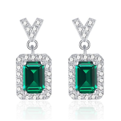 925银培育祖母绿耳环