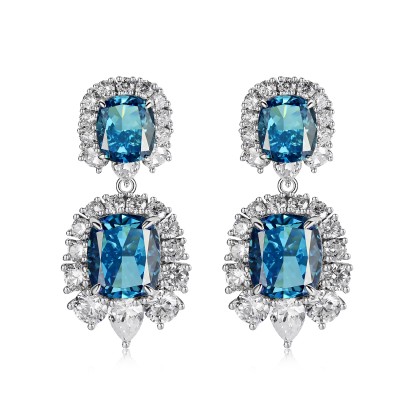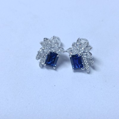925银立方氧化锆蓝色耳环