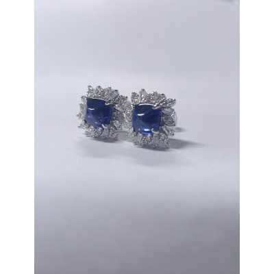 925银培育蓝宝耳环 1.04ct/对