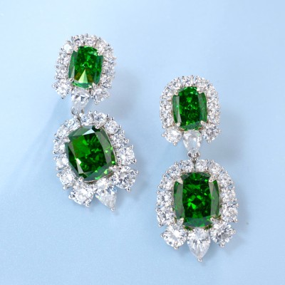 925银立方氧化锆绿色耳环