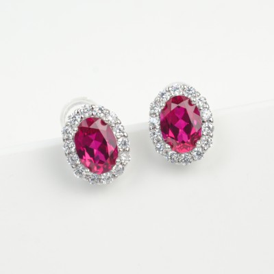 925银培育蓝宝耳环 4*6
