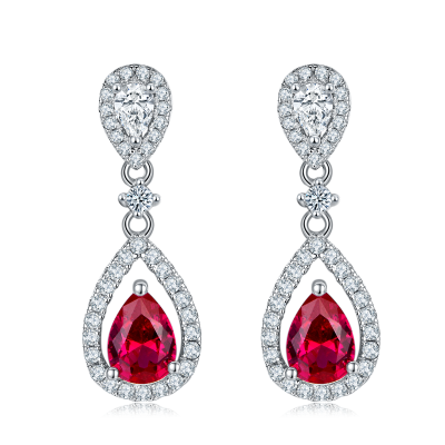 925银培育蓝宝耳环