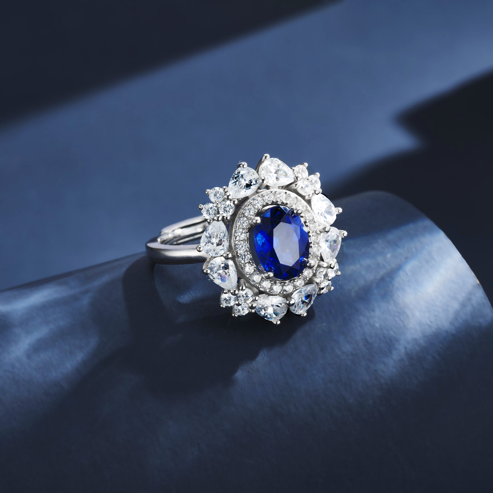 925 银培育蓝宝戒指|满钻奢宠 指尖的高定闪耀盛宴