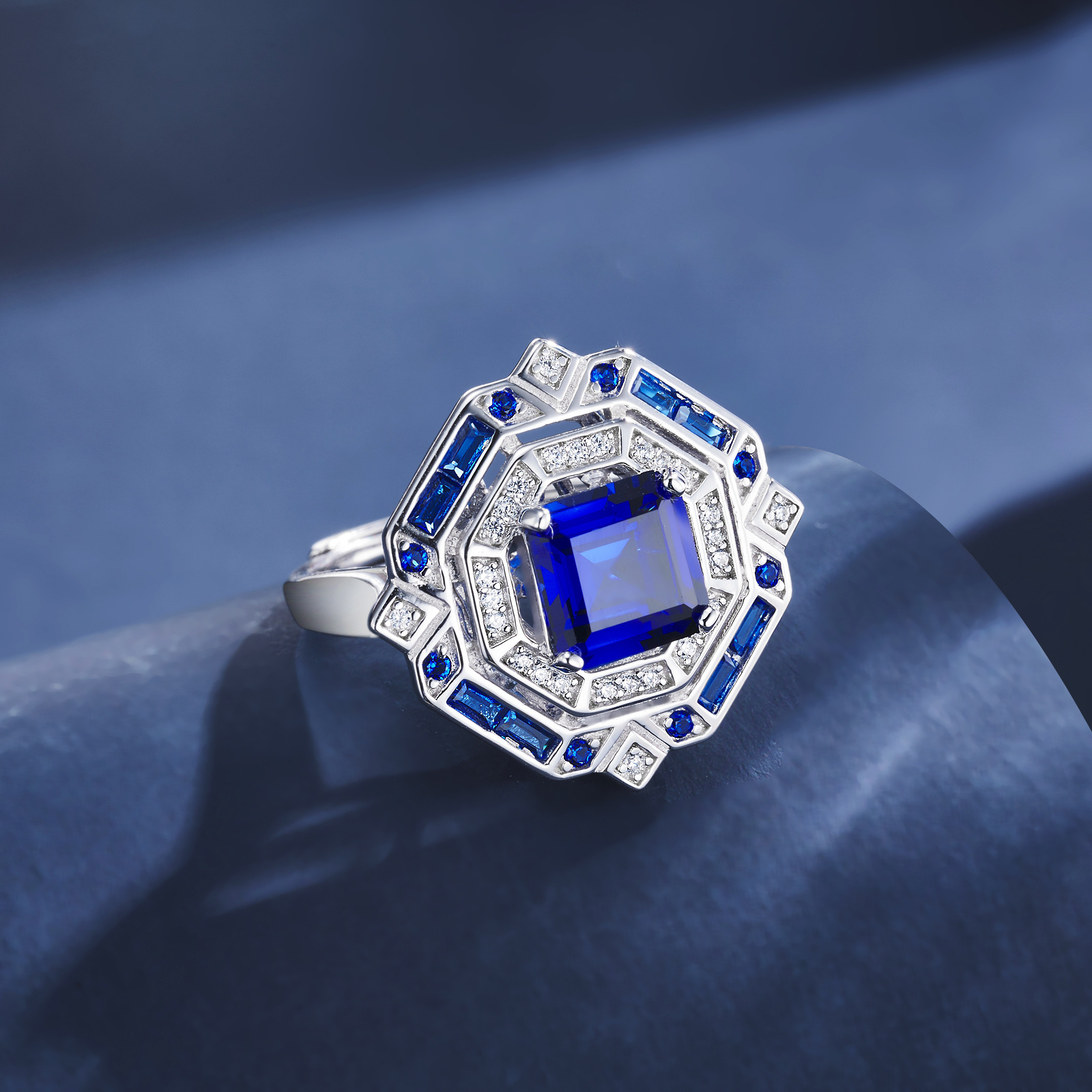 925 银培育蓝宝戒指|3.18CT 艺术宝石 指尖的高定几何盛宴