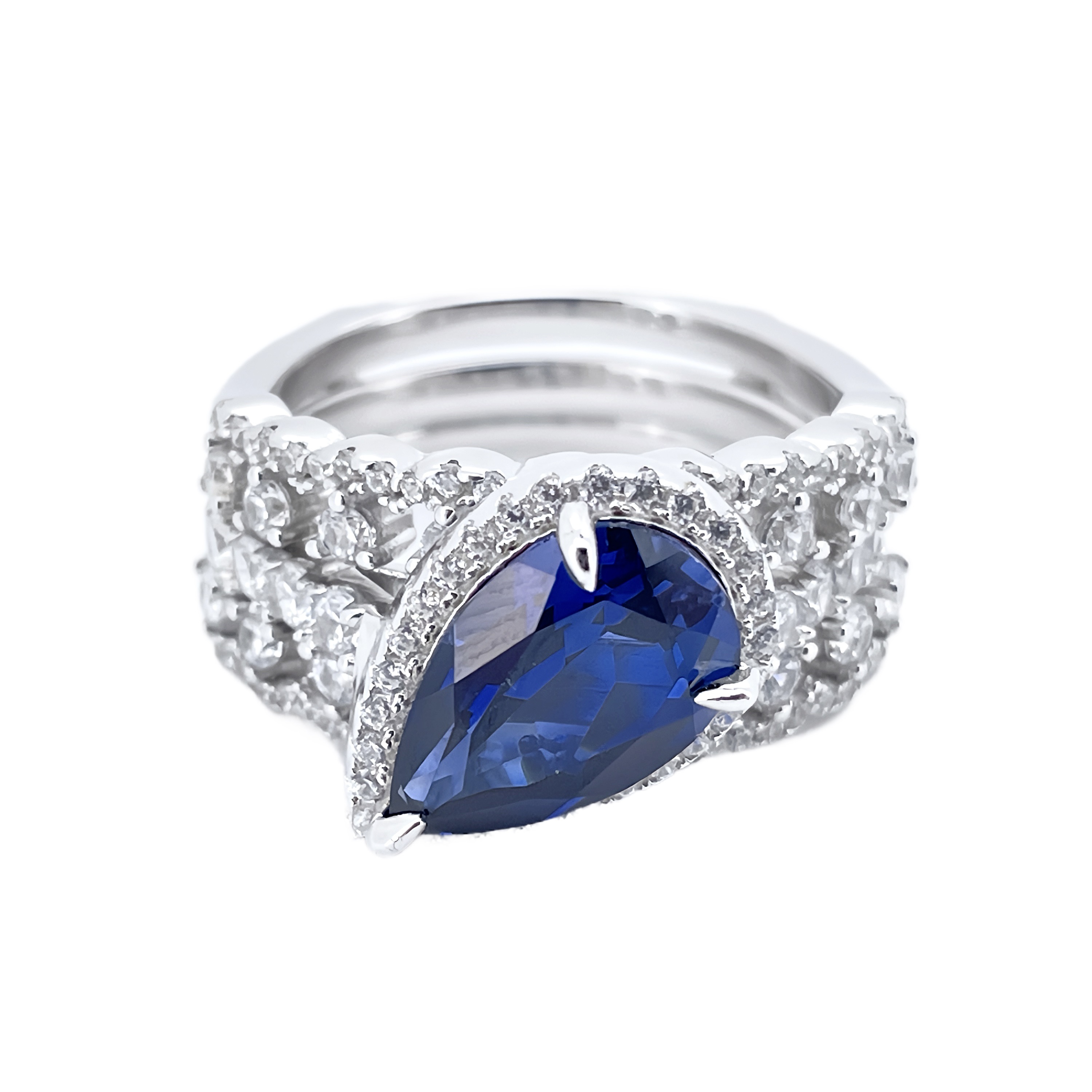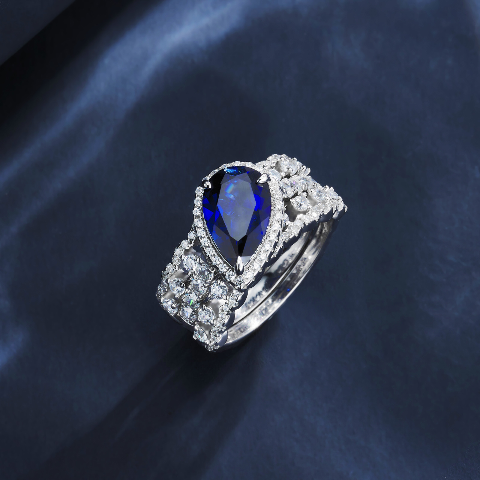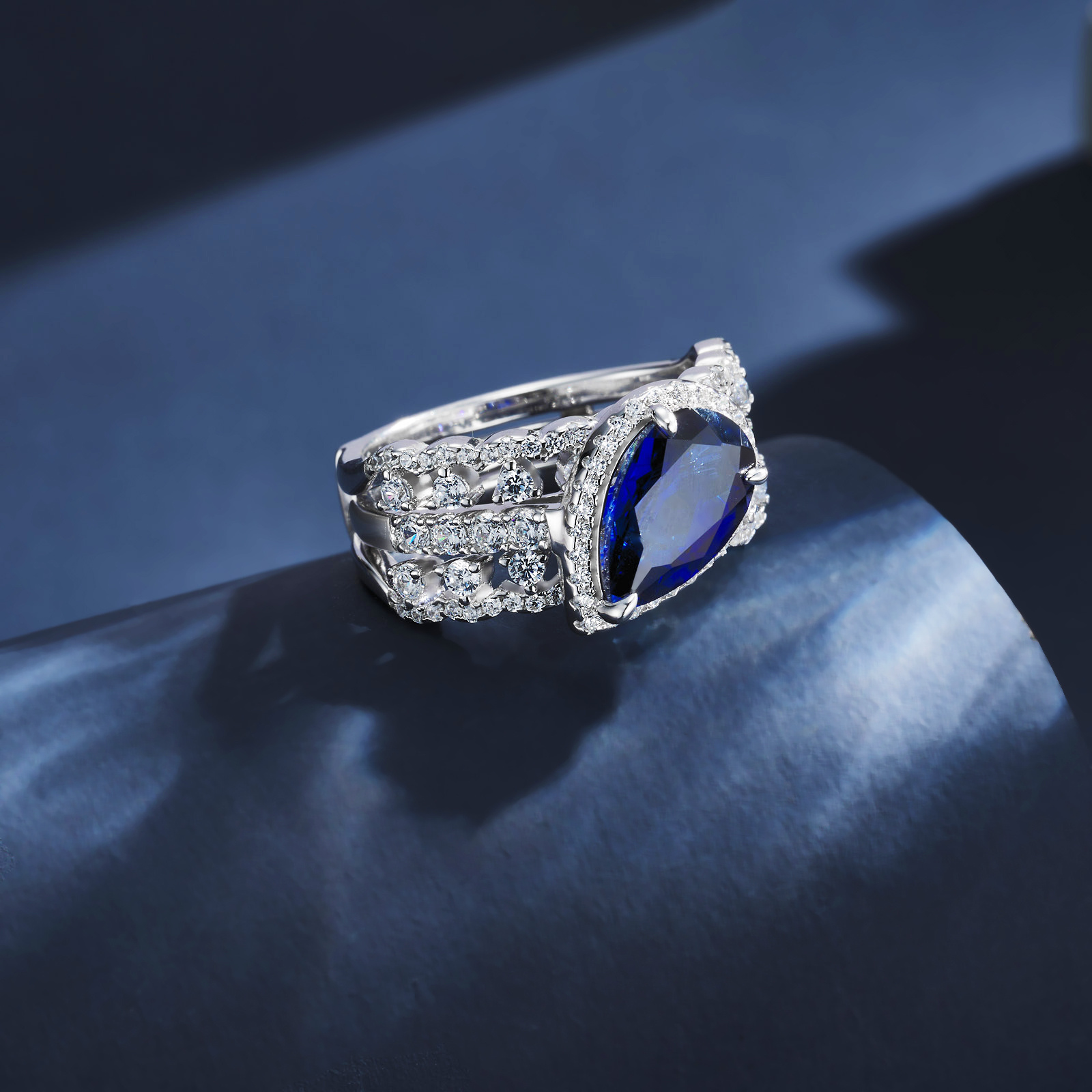 925 银培育蓝宝戒指|2.76CT 水滴宝石 指尖的高定叠戴盛宴
