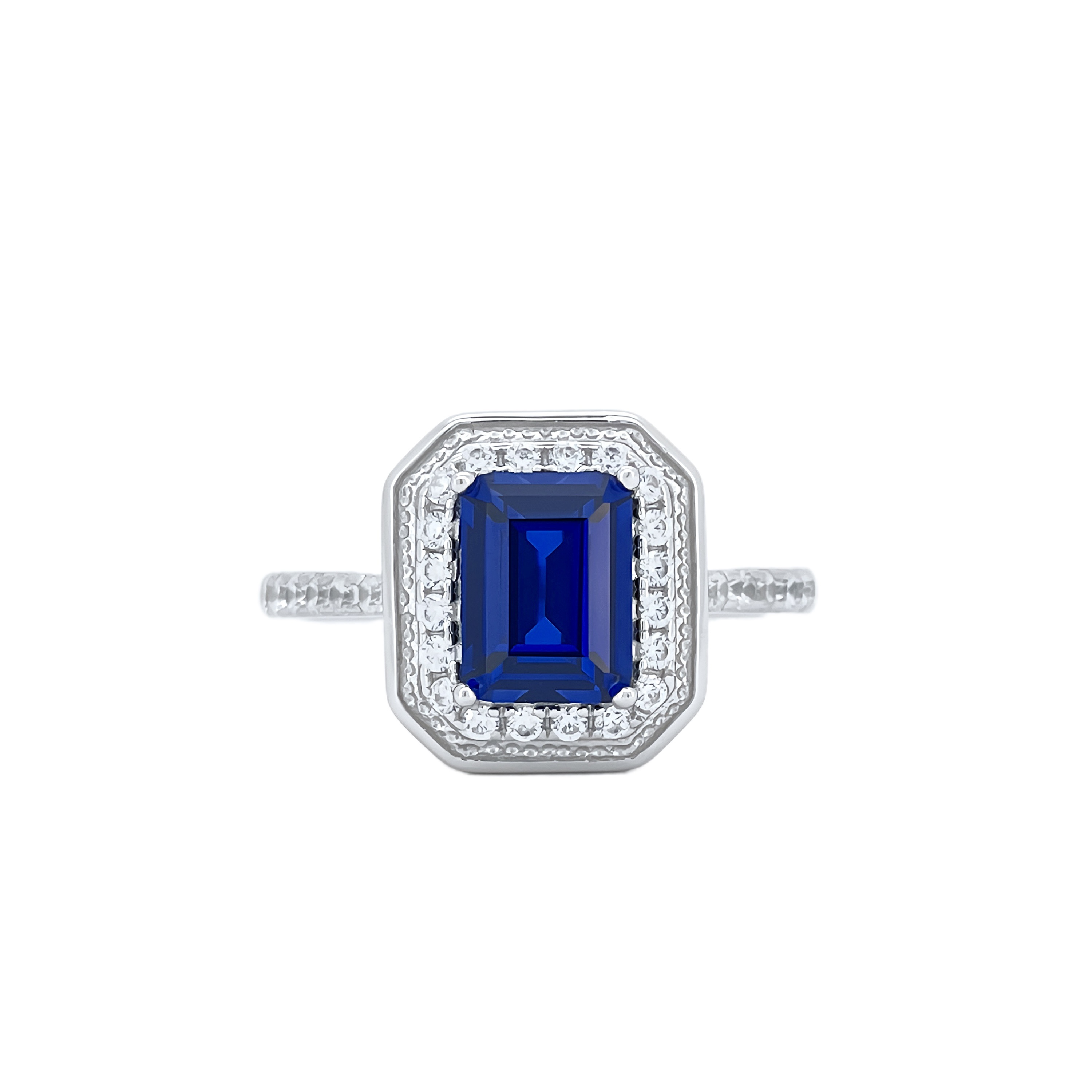设计巧思:采用 “复古几何围镶 + 钻饰戒臂” 设计,将祖母绿切割蓝宝的规整轮廓与银戒的复古线条融合,小众设计极具辨识度,是指尖的吸睛焦点。