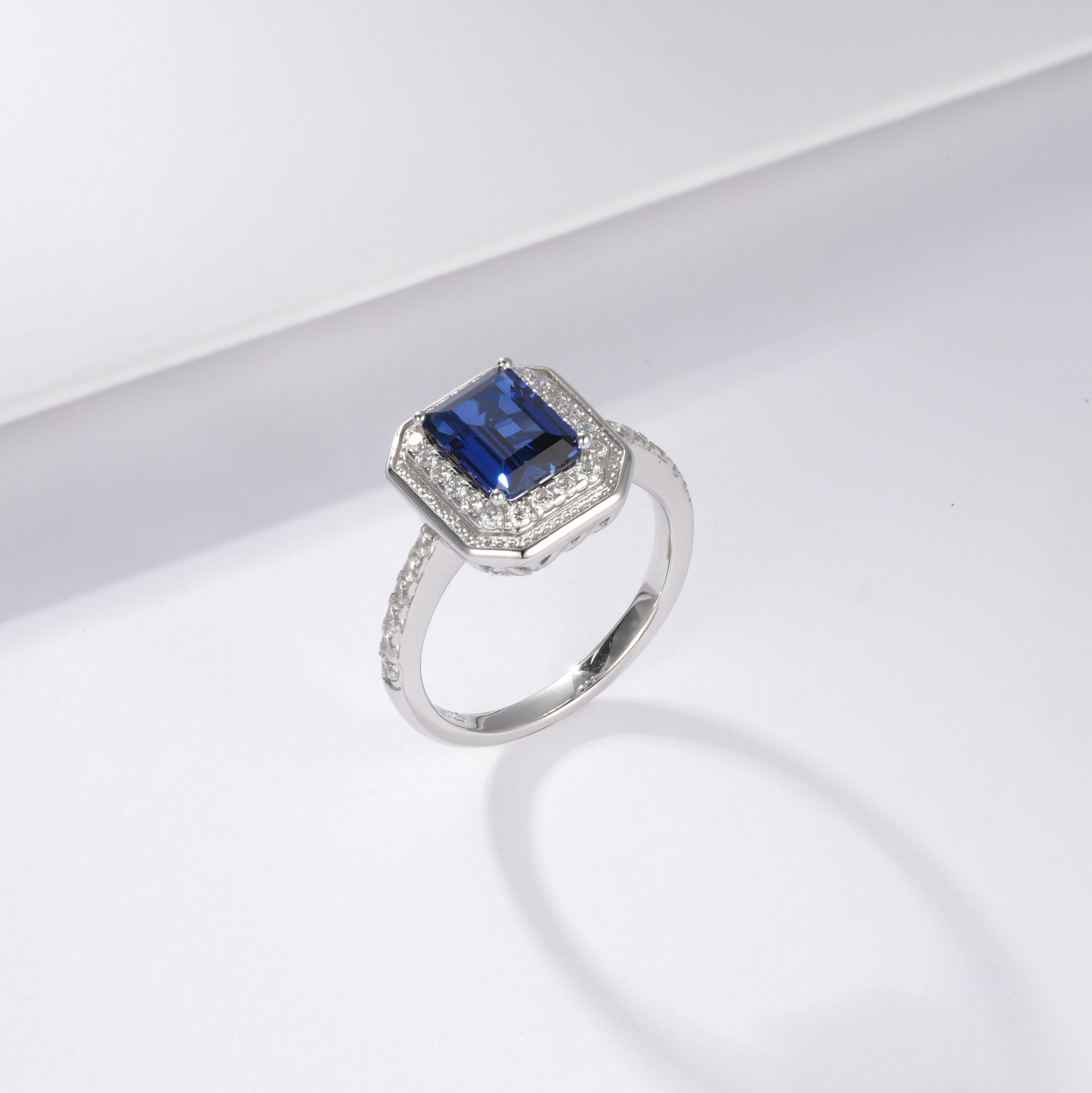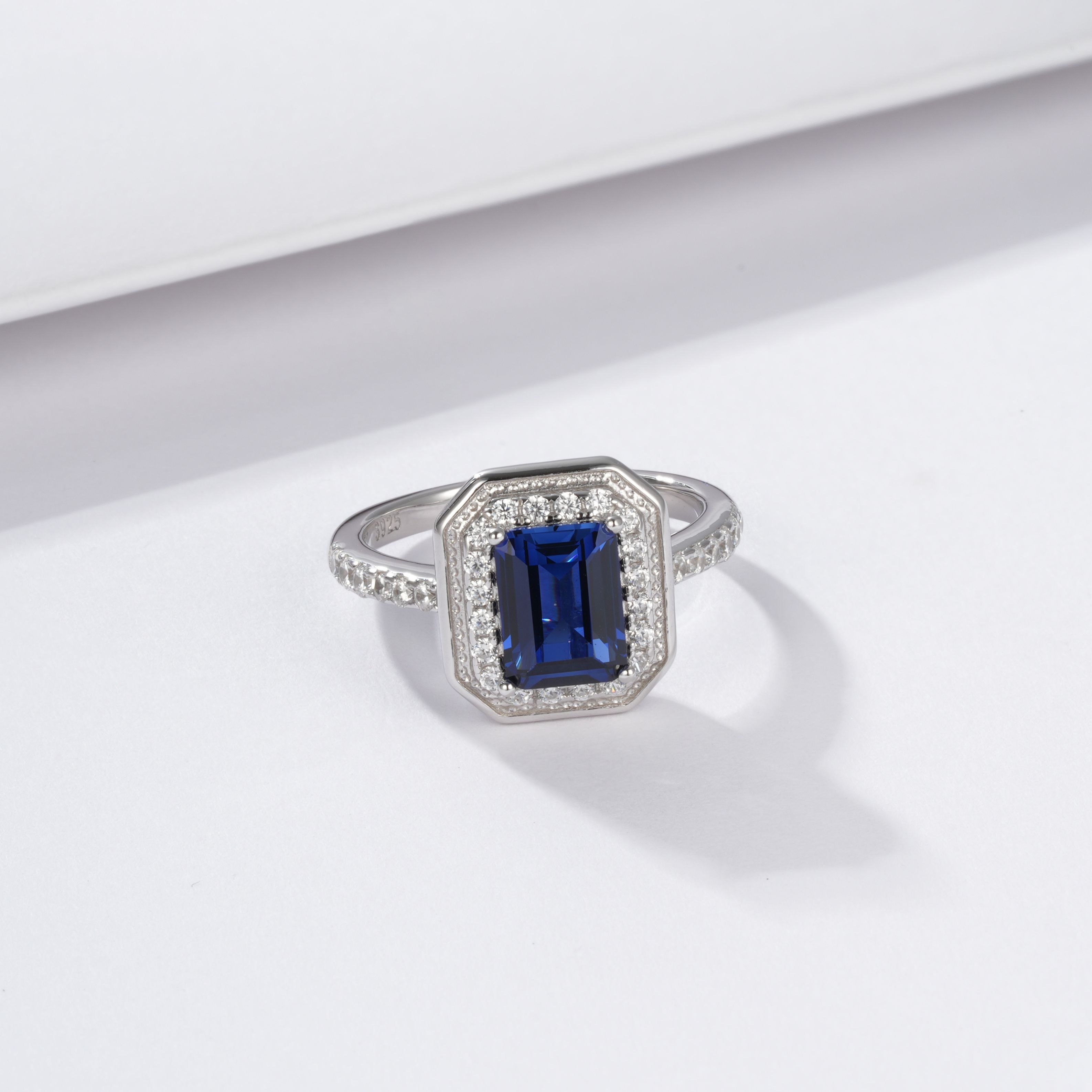 925 银培育蓝宝戒指|1.7CT 几何宝石 指尖的复古轻奢盛宴