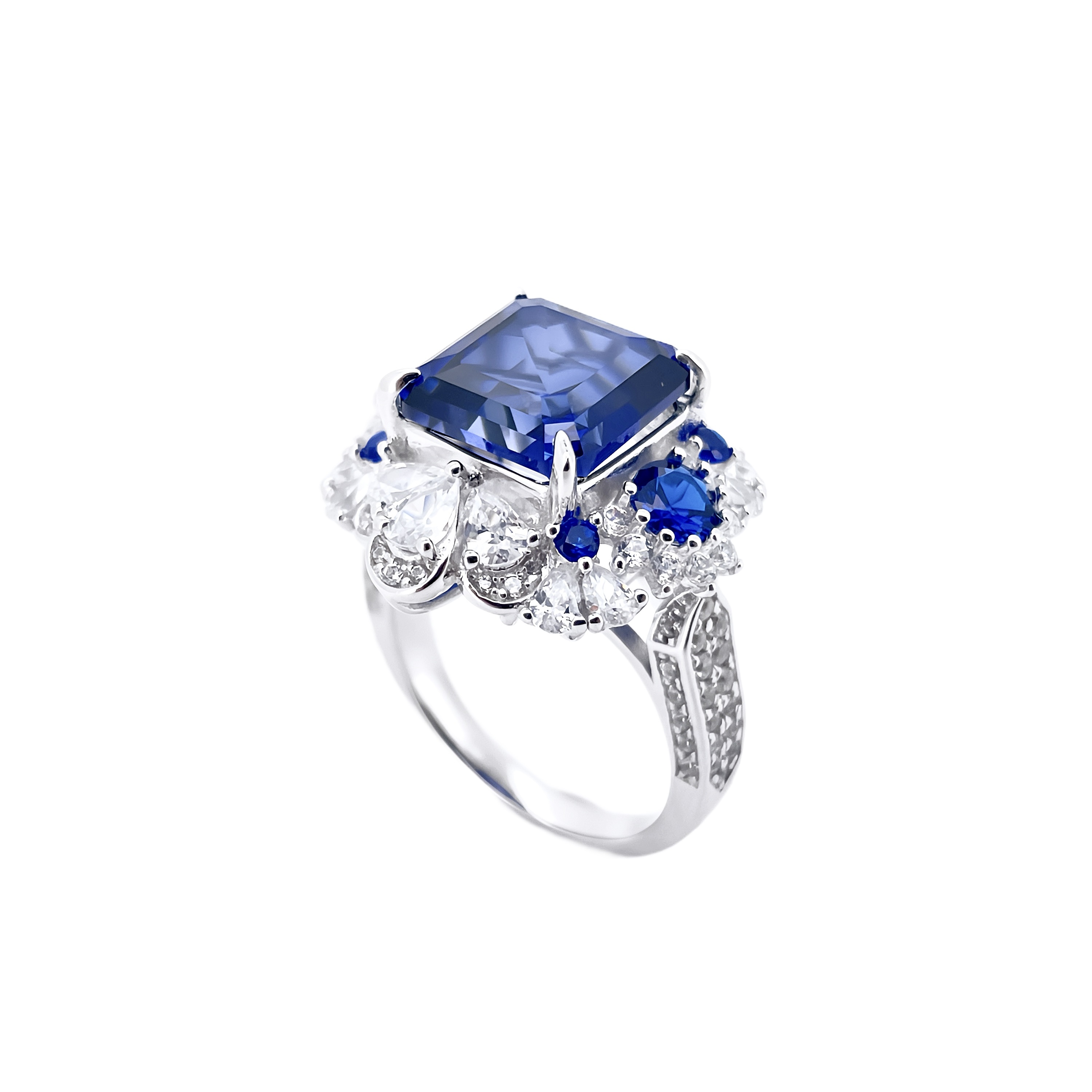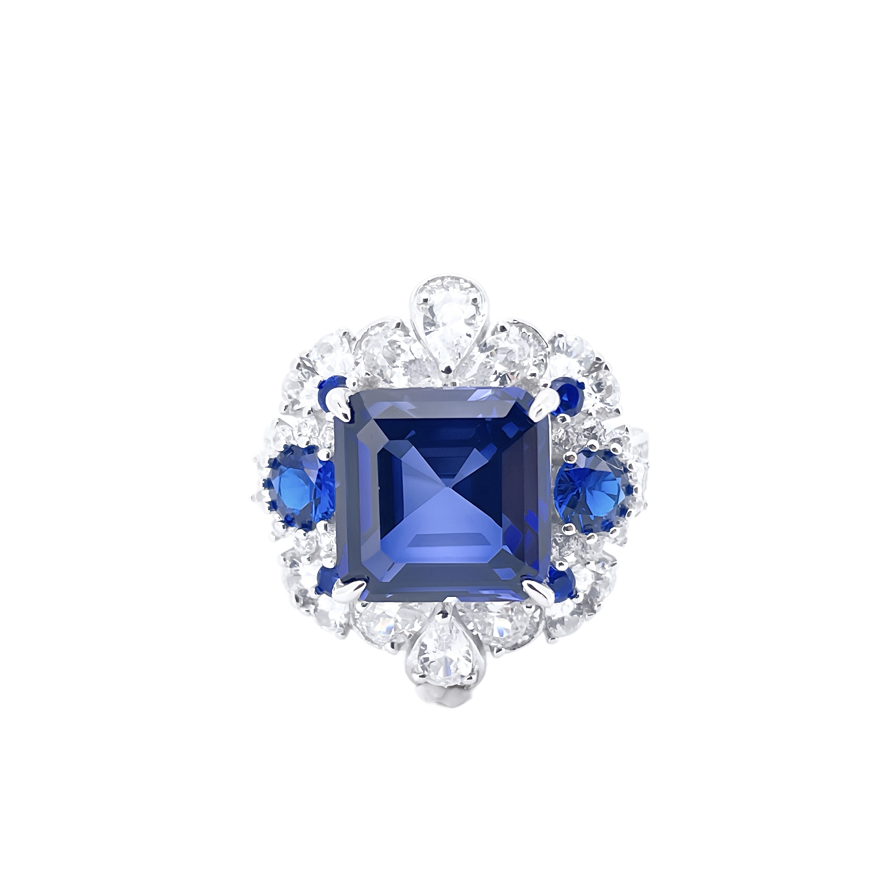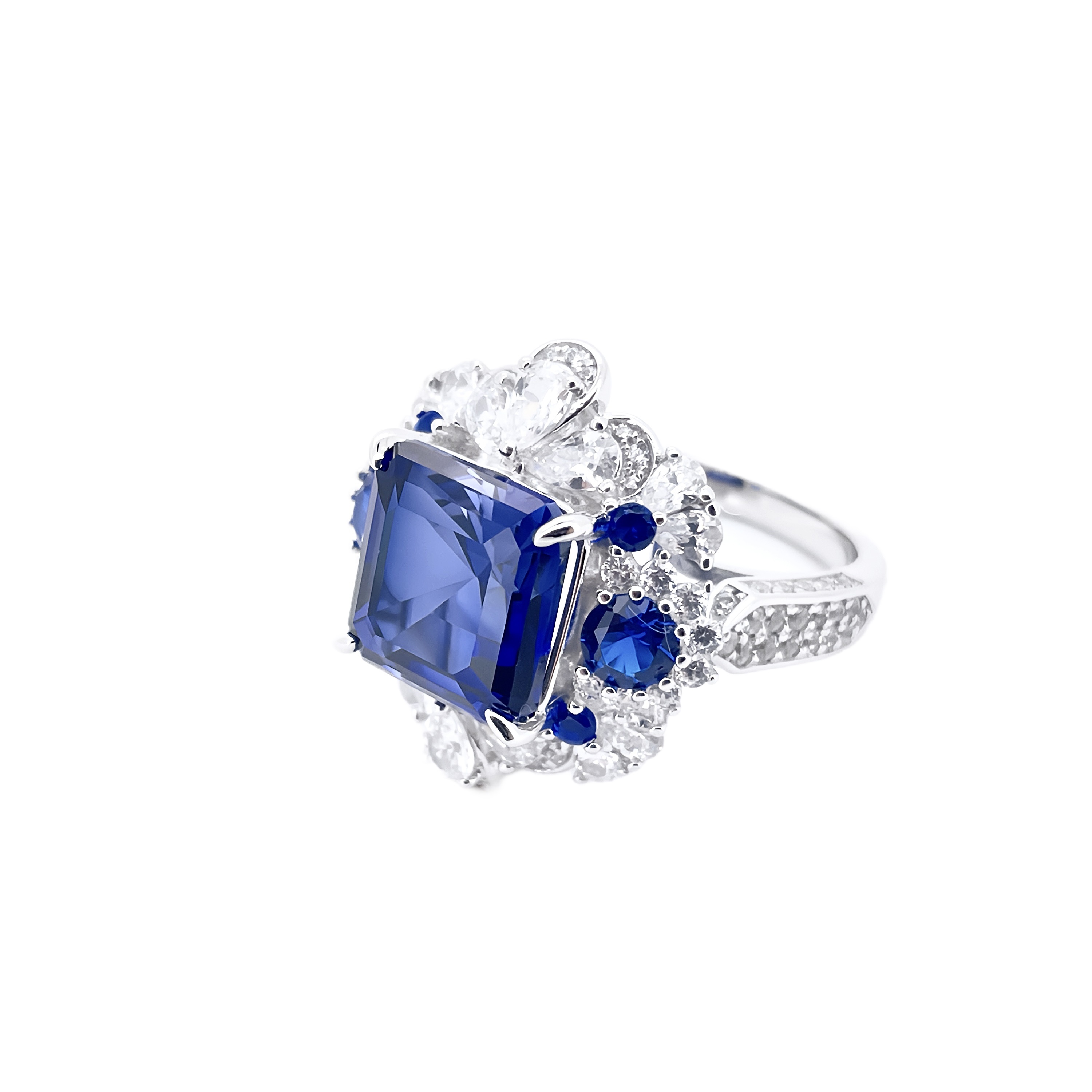 设计巧思:采用 “主石焦点 + 多层彩宝镶钻” 设计,将公主方蓝宝的规整轮廓与银戒的艺术线条融合,小众设计极具辨识度,是指尖的吸睛焦点。