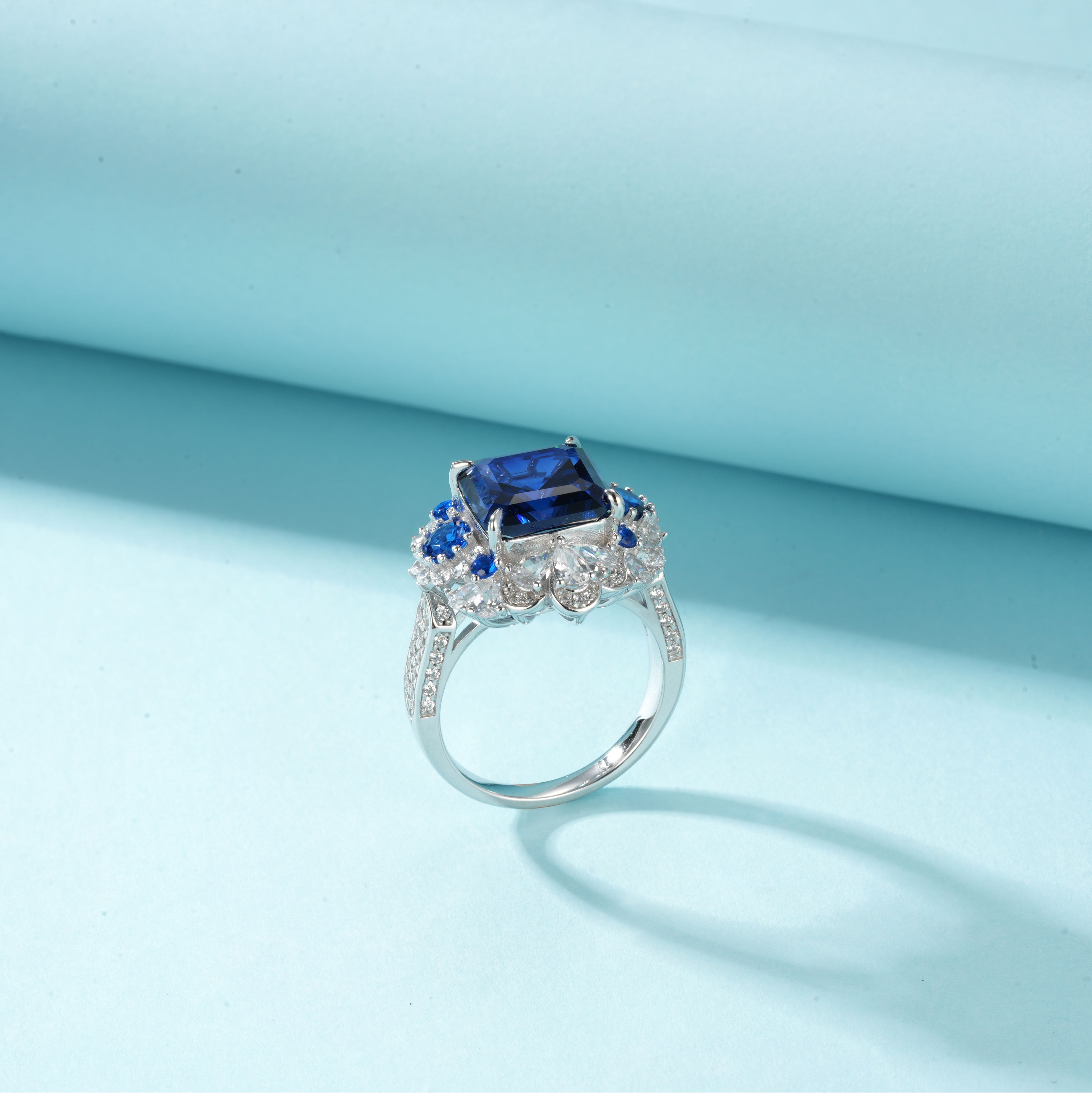 925 银培育蓝宝戒指|4.8CT 奢华宝石 指尖的高定艺术盛宴