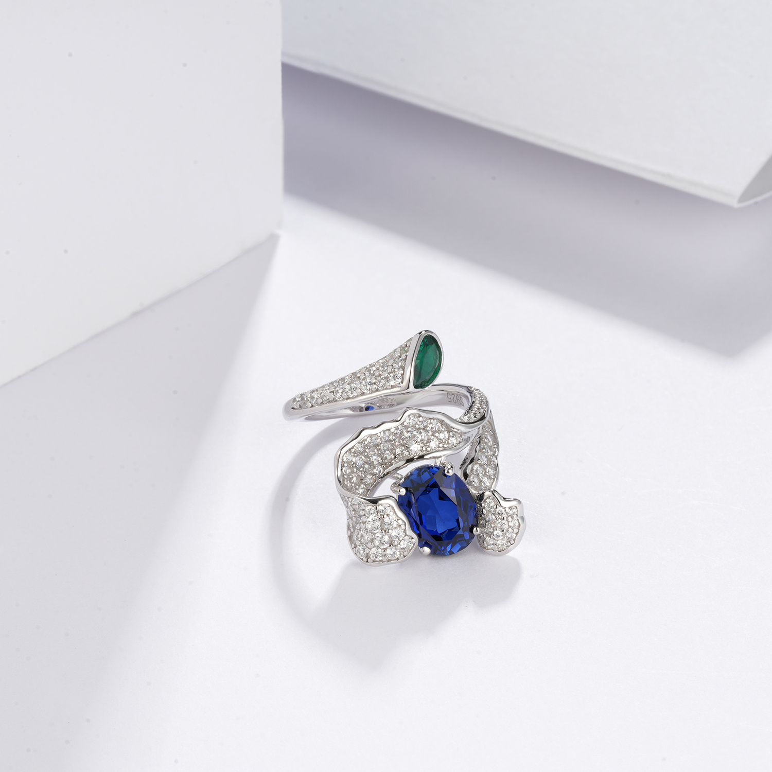 这款 925 银培育蓝宝戒指,以艺术设计和奢华宝石,重新定义轻奢珠宝的艺术体验,是收藏级质感与重要场合佩戴的完美平衡,自留彰显品味高度,送礼传递重磅心意。