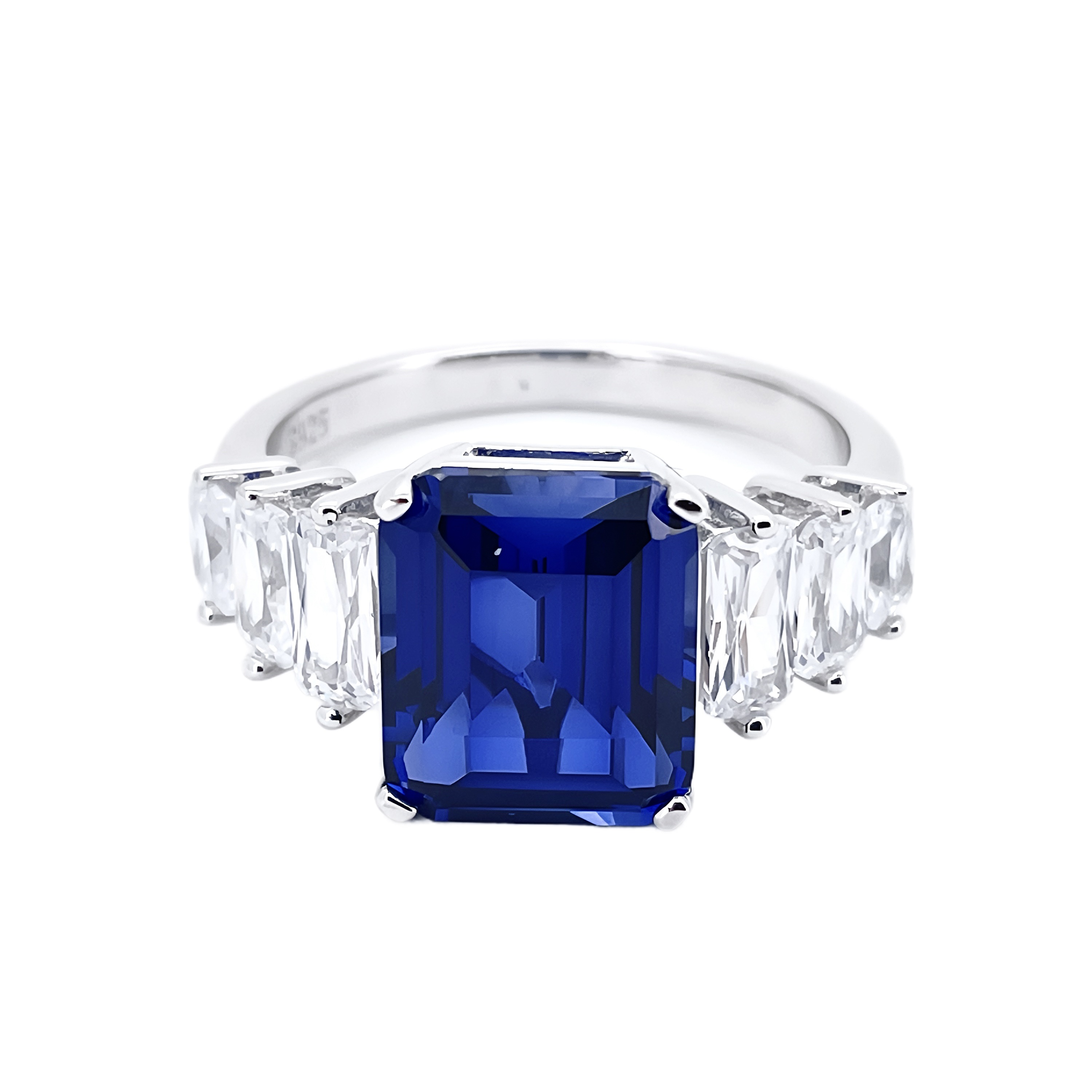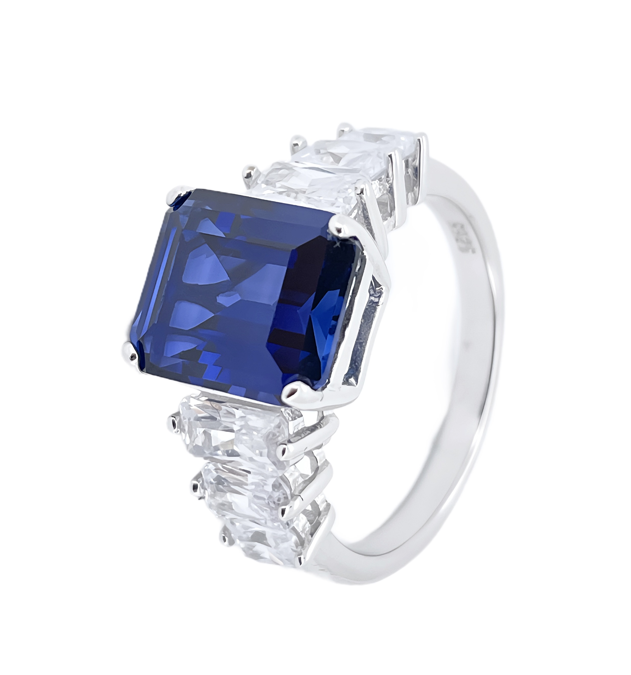 设计巧思:采用 “主石焦点 + 梯方钻饰衬” 设计,将祖母绿切割蓝宝的规整轮廓与银戒的几何线条融合,小众设计极具辨识度,是指尖的吸睛焦点。