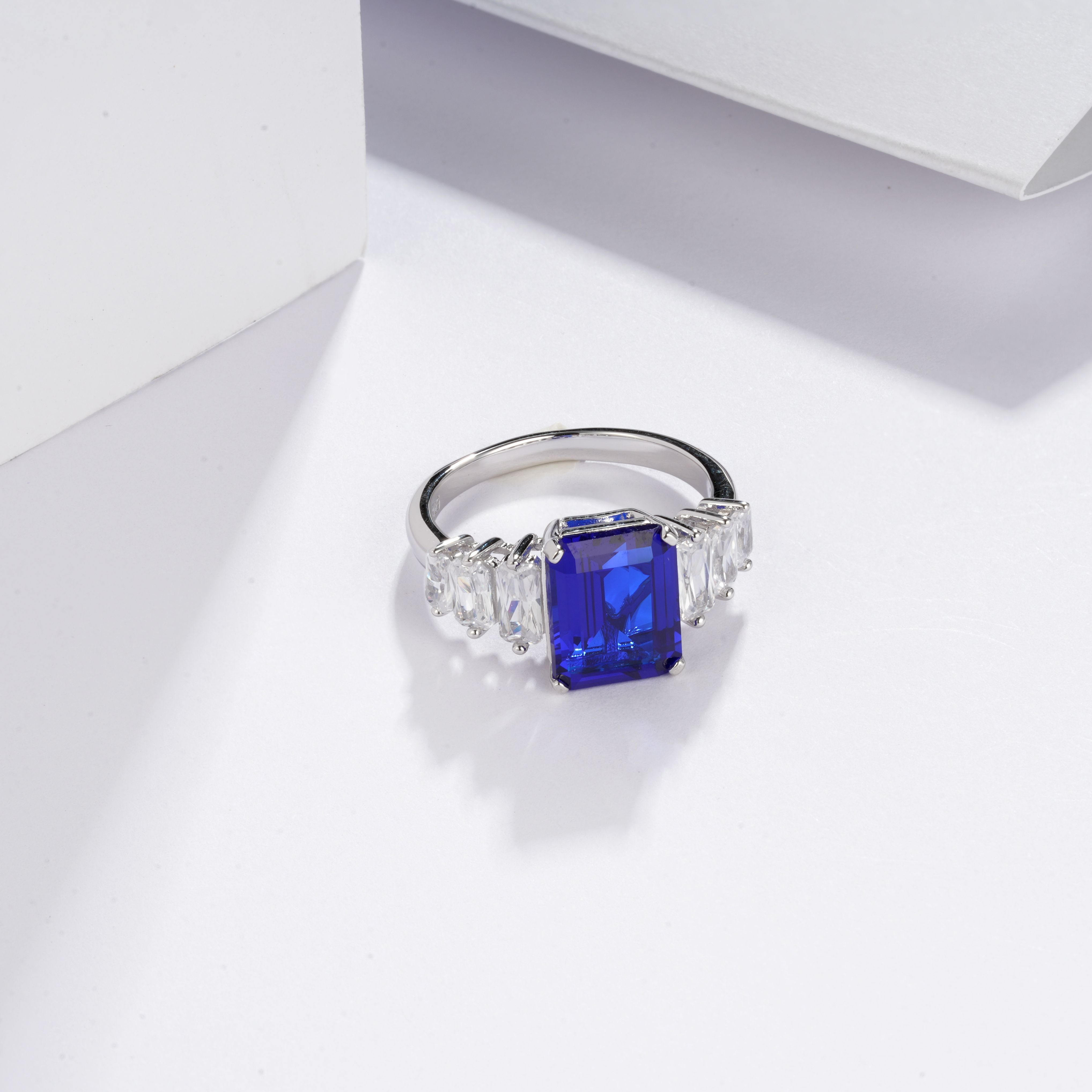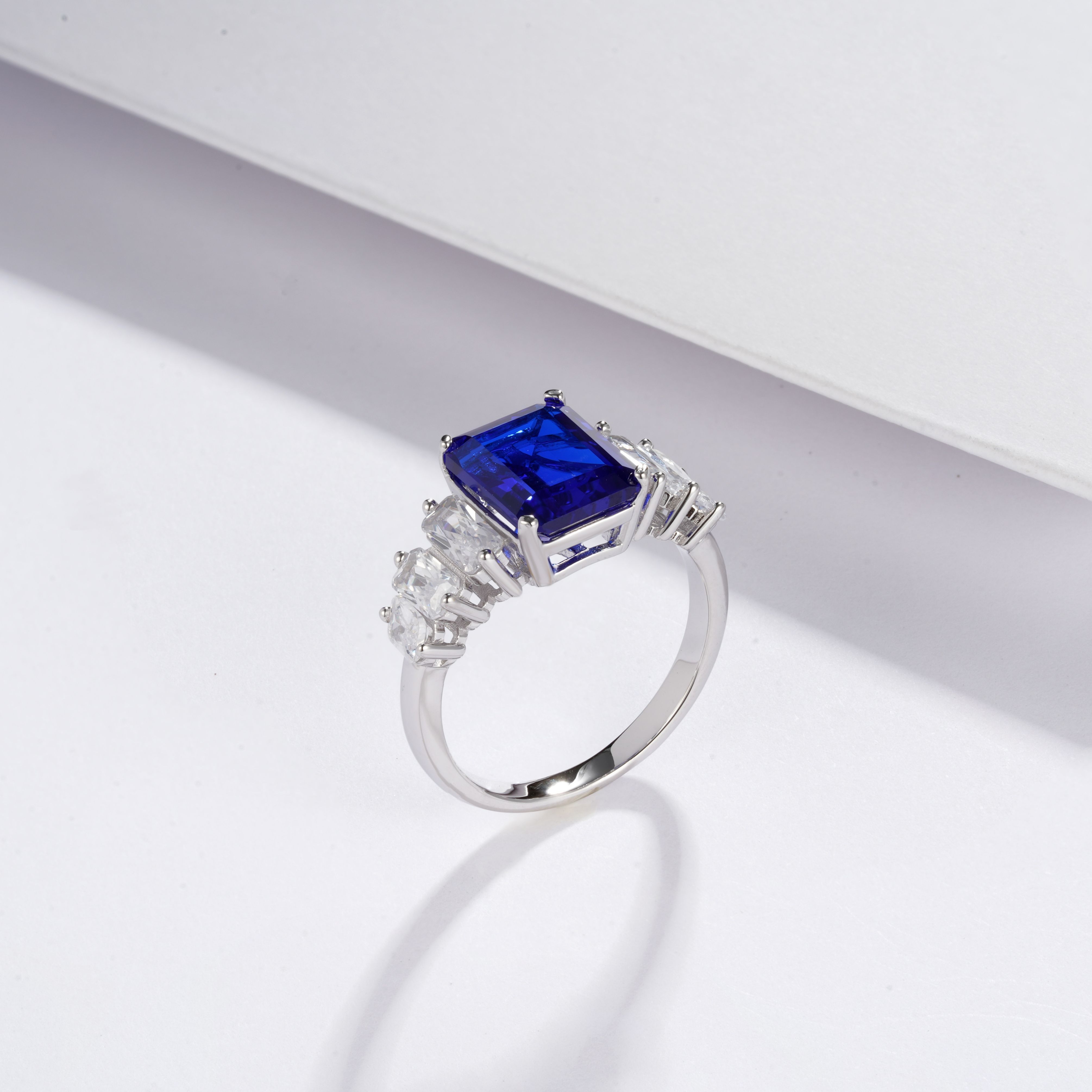 925 银培育蓝宝戒指|6.04CT 奢宠宝石 指尖的高定几何盛宴