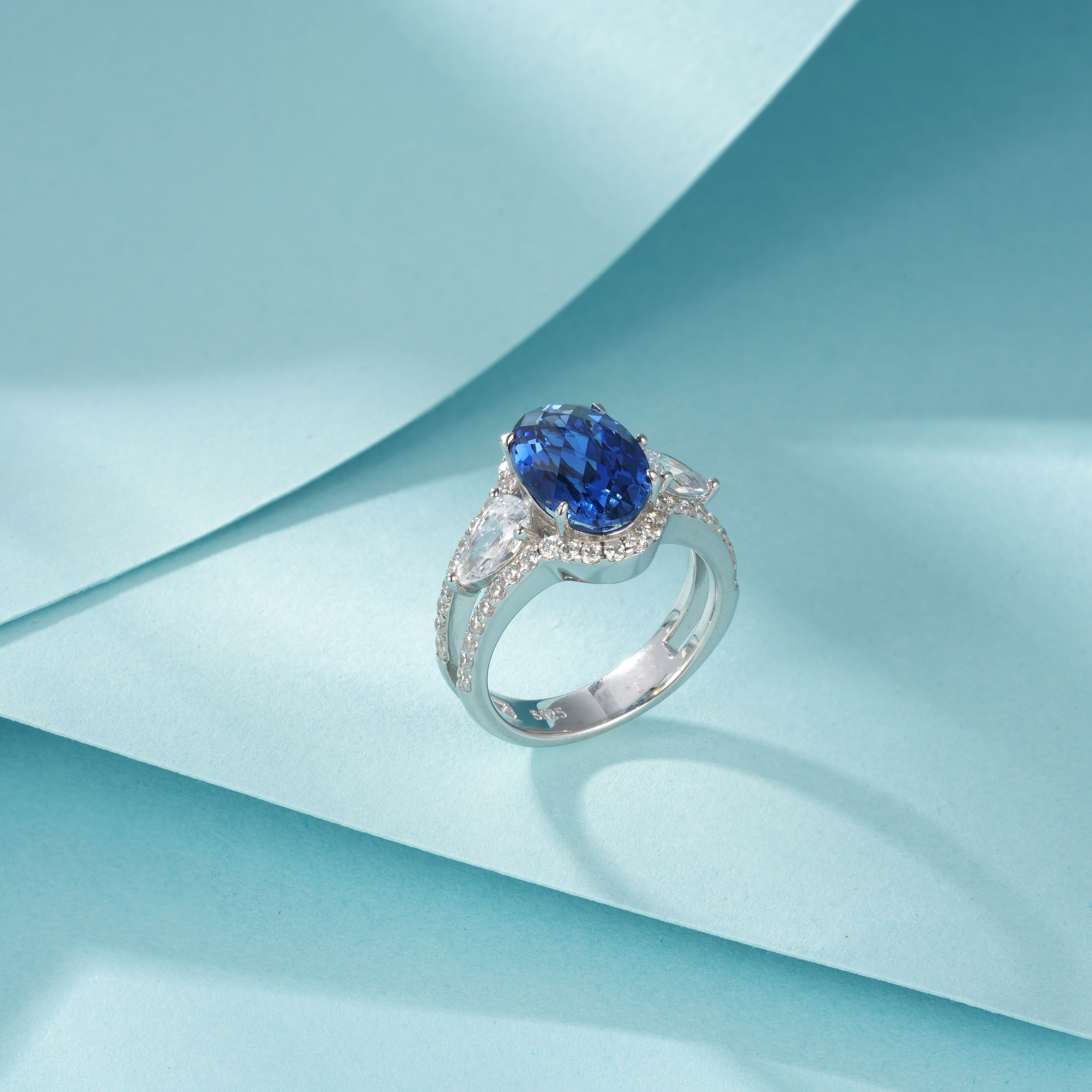 925 银培育蓝宝戒指|4.4CT 奢宠宝石 指尖的高定星光盛宴