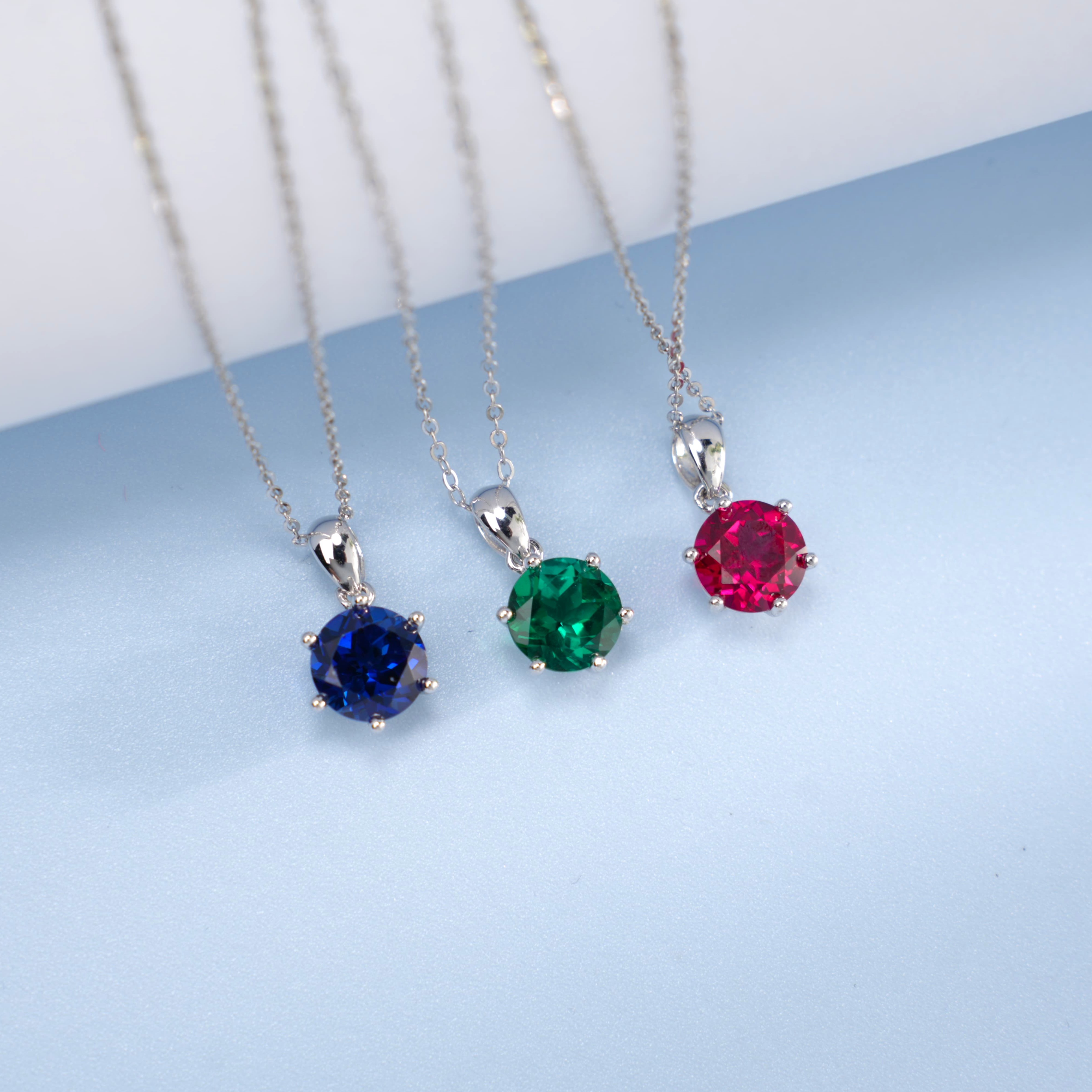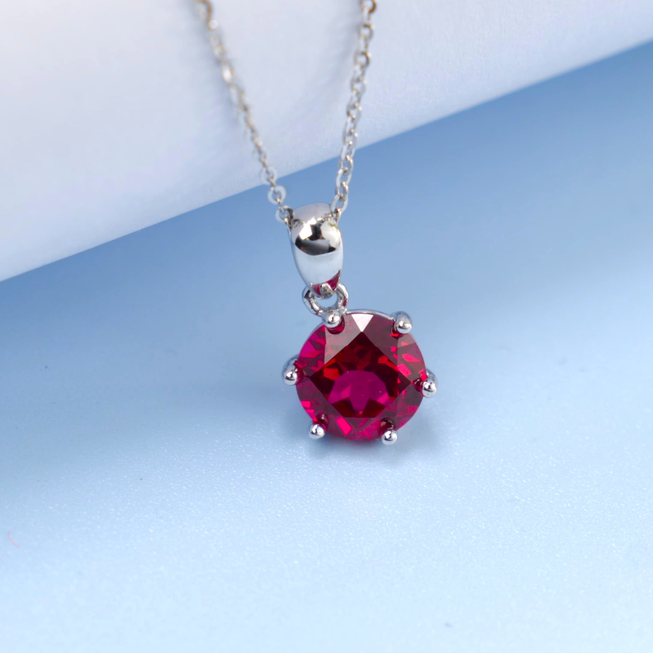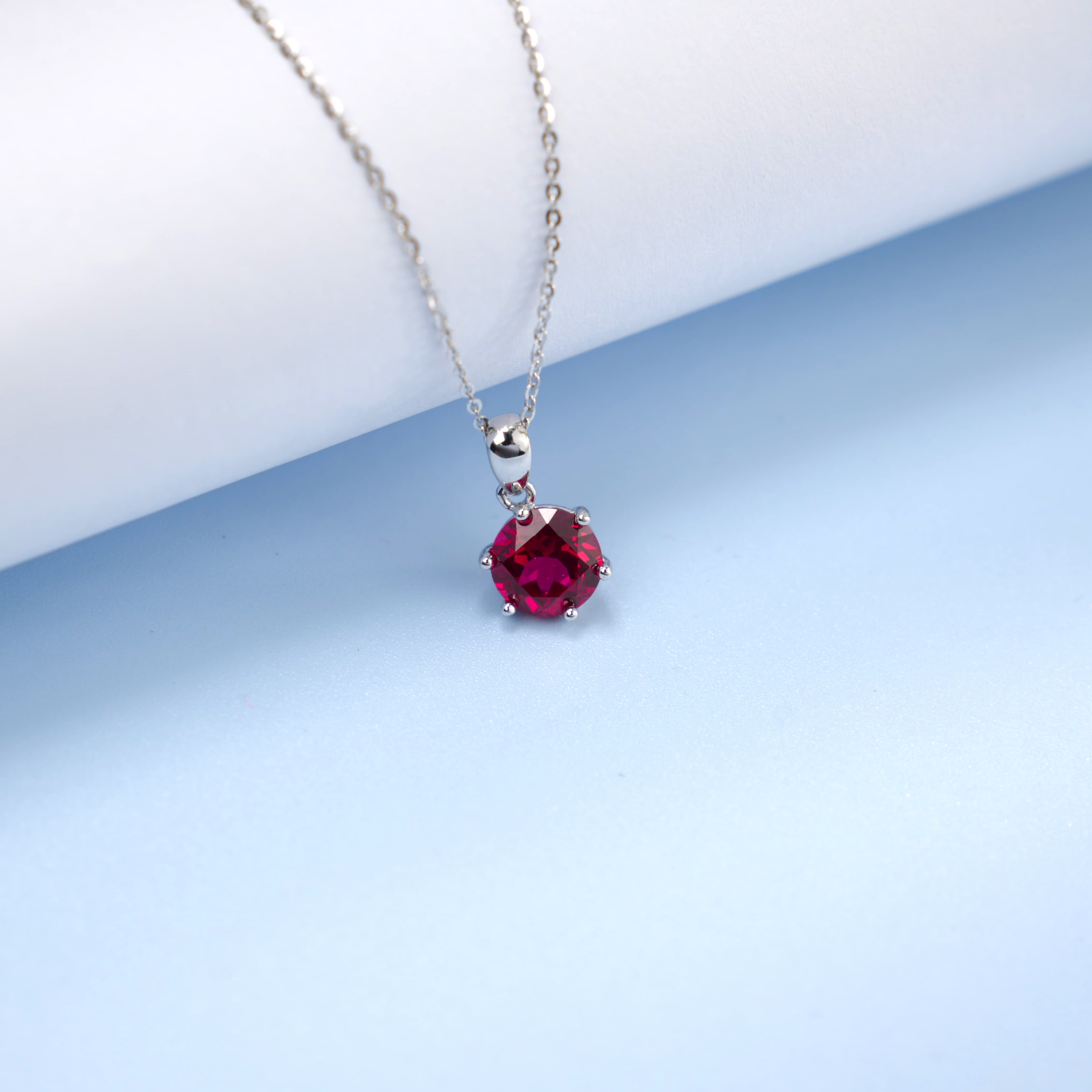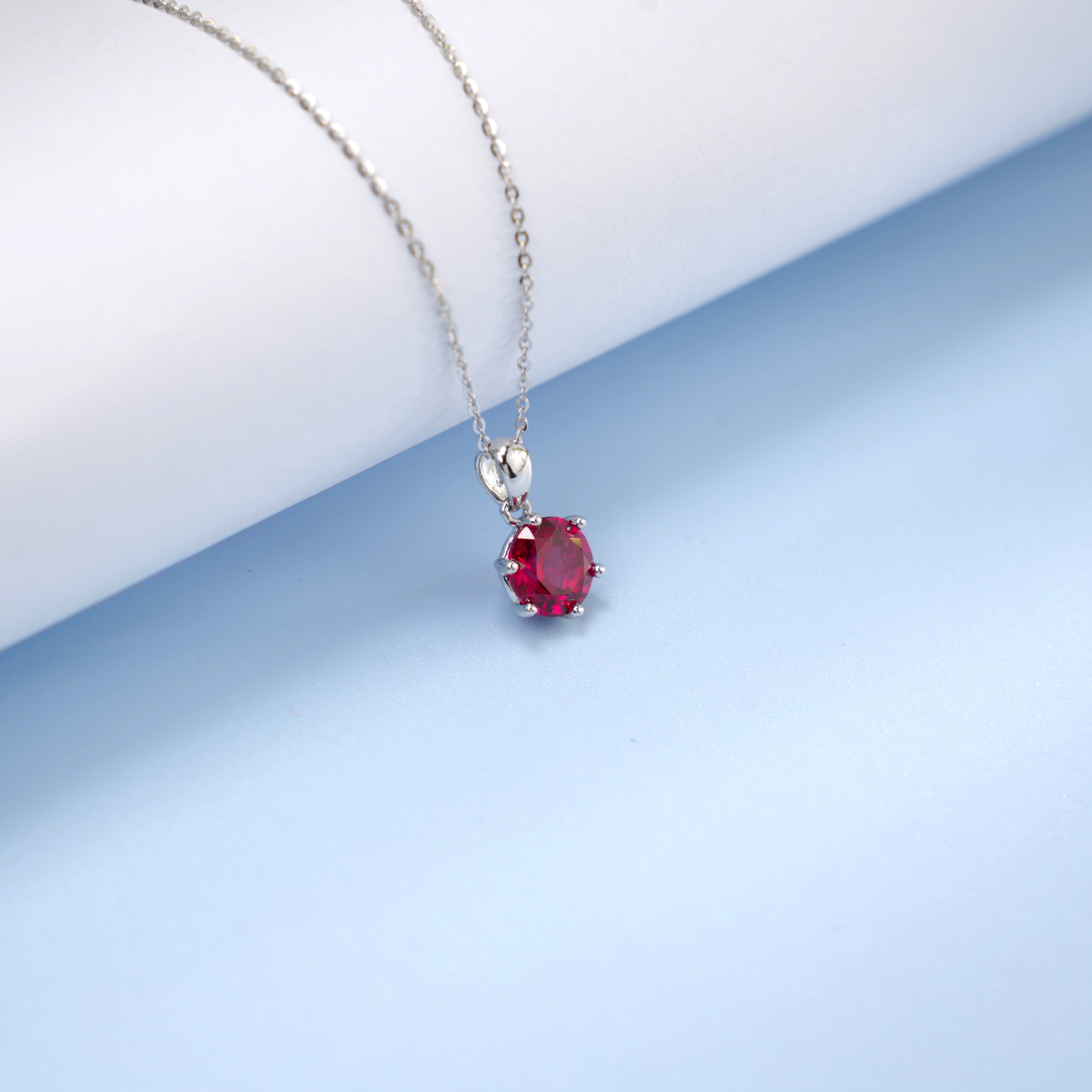 925 银培育红宝单钻项链