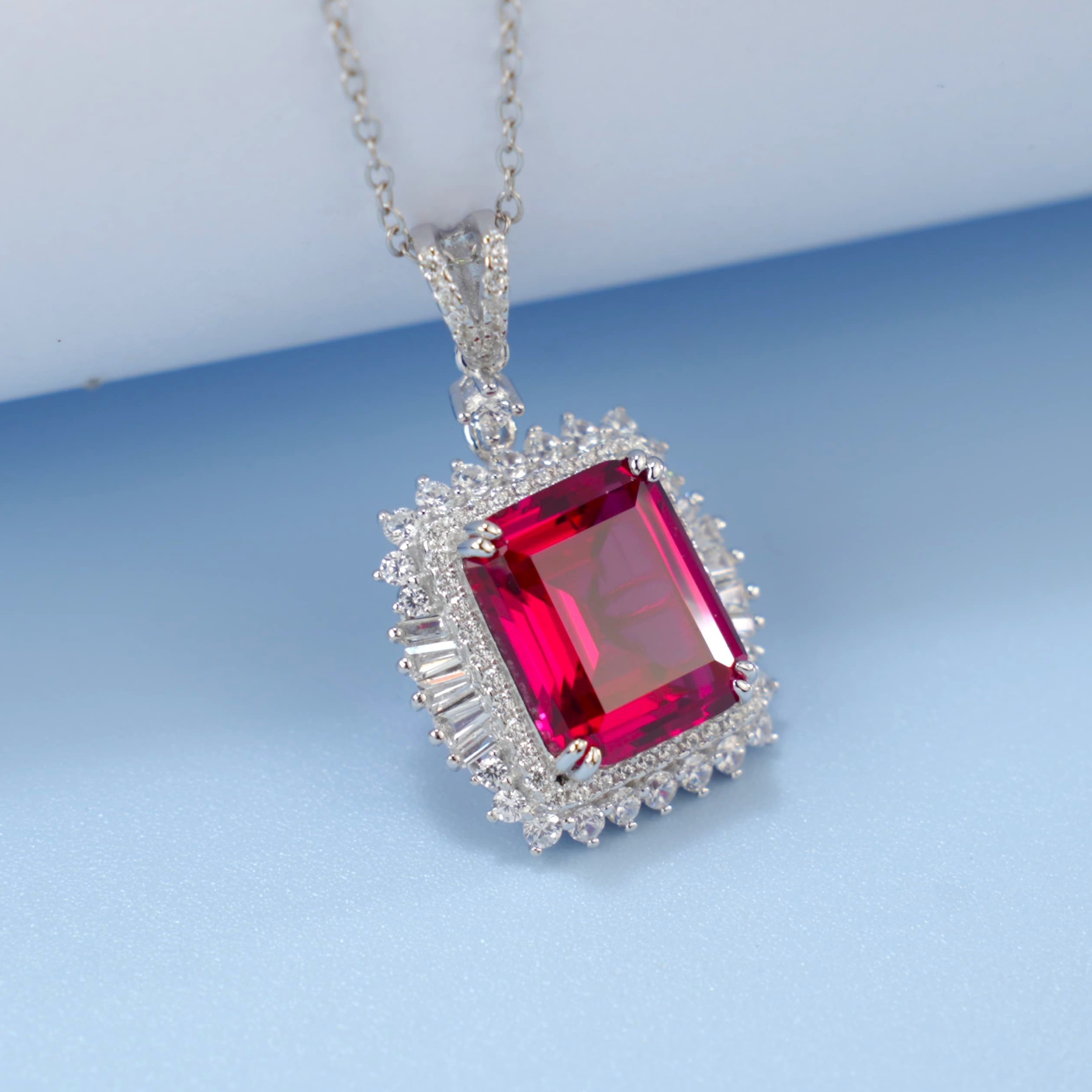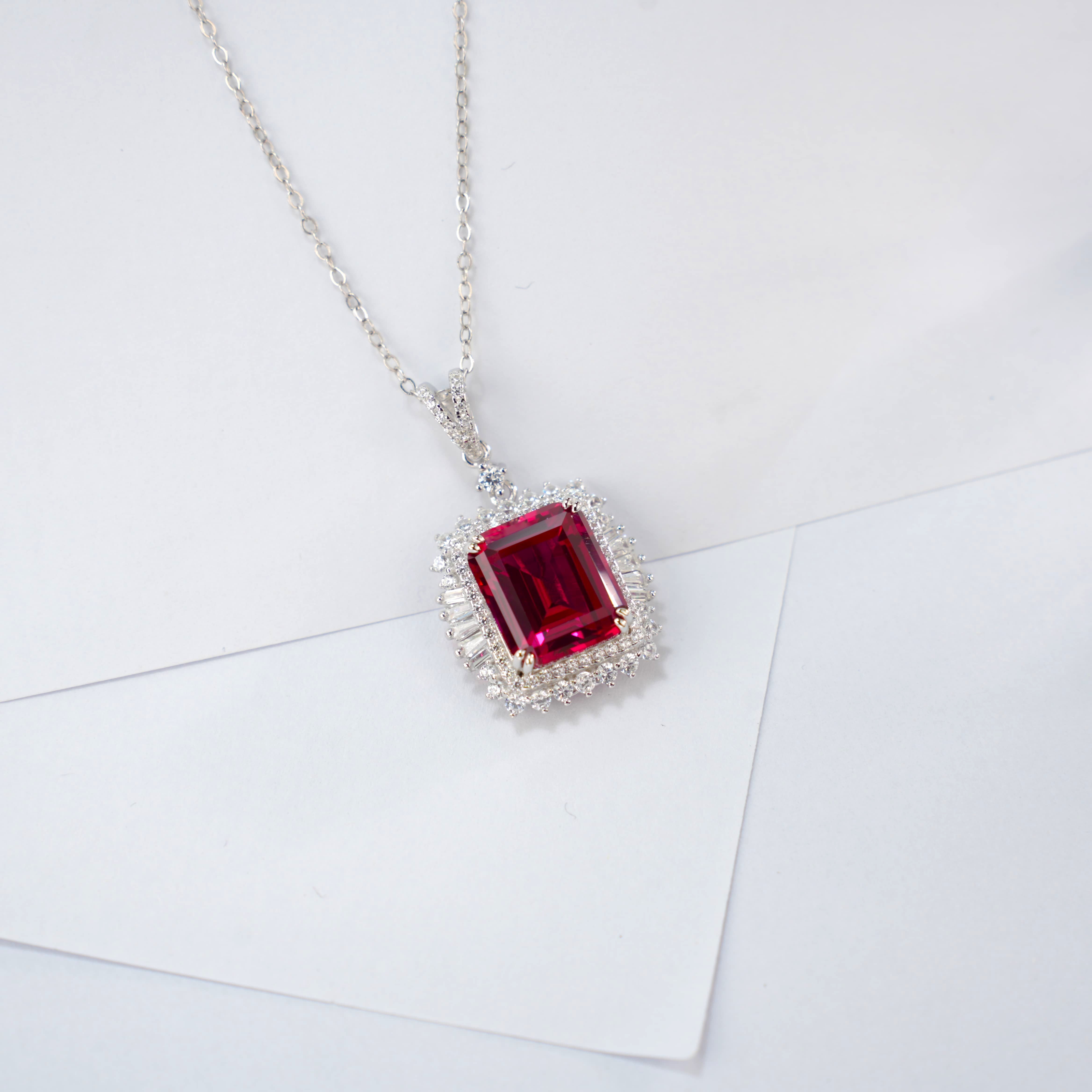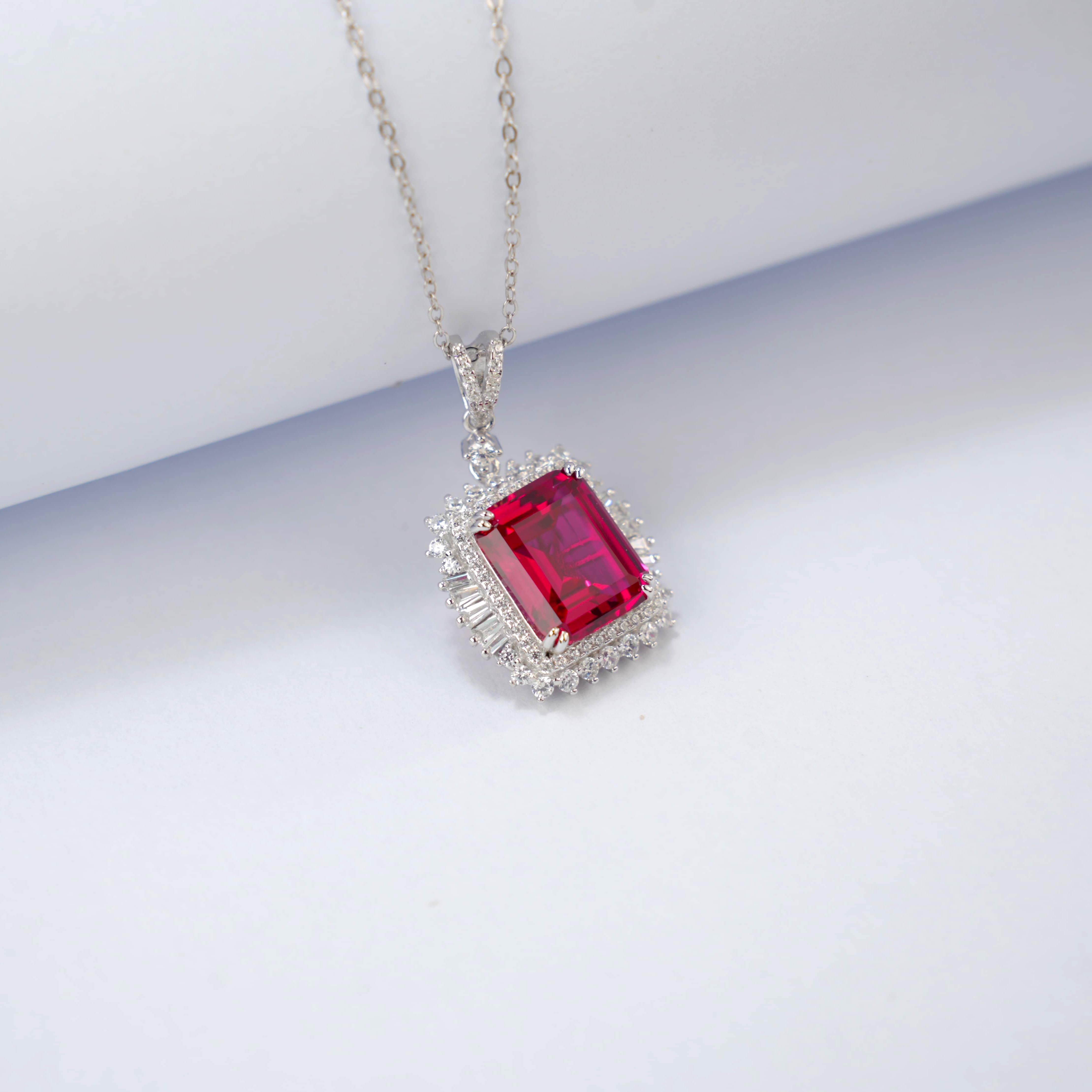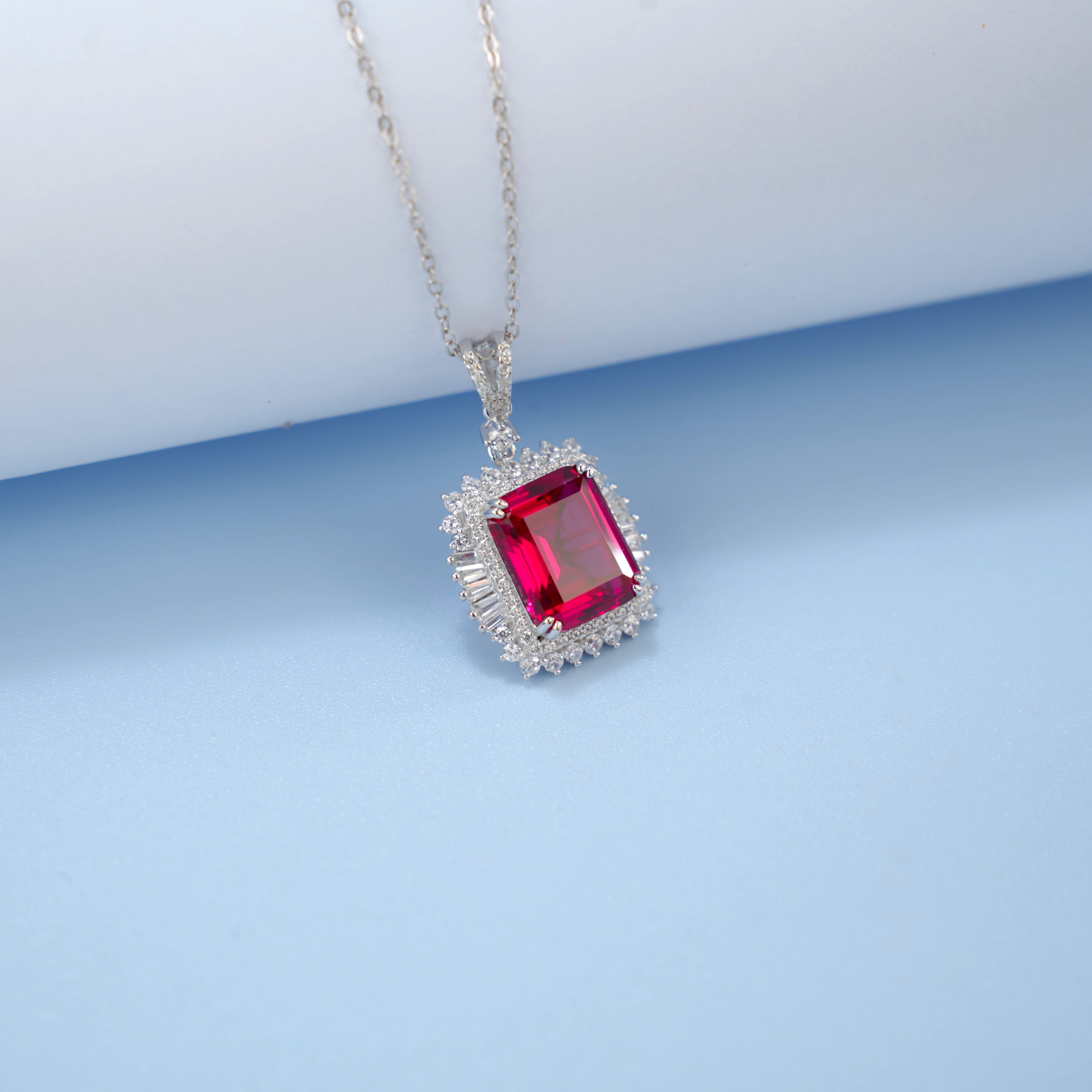 925 银培育红宝方钻豪华项链(ZHFP0445R)
