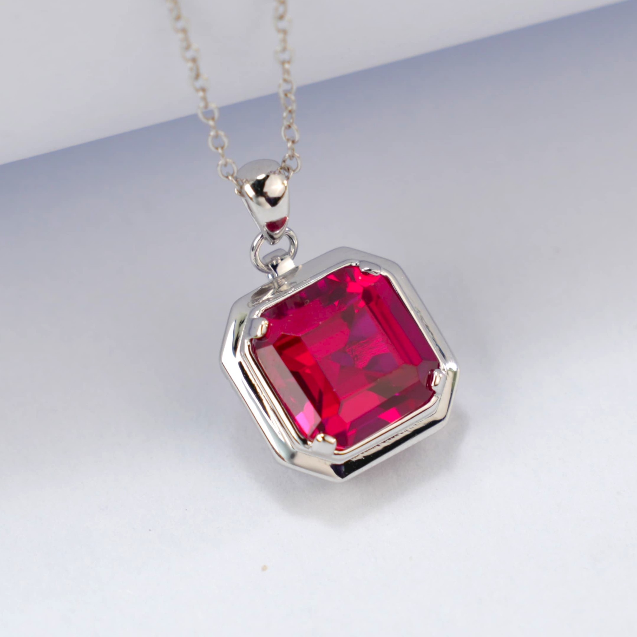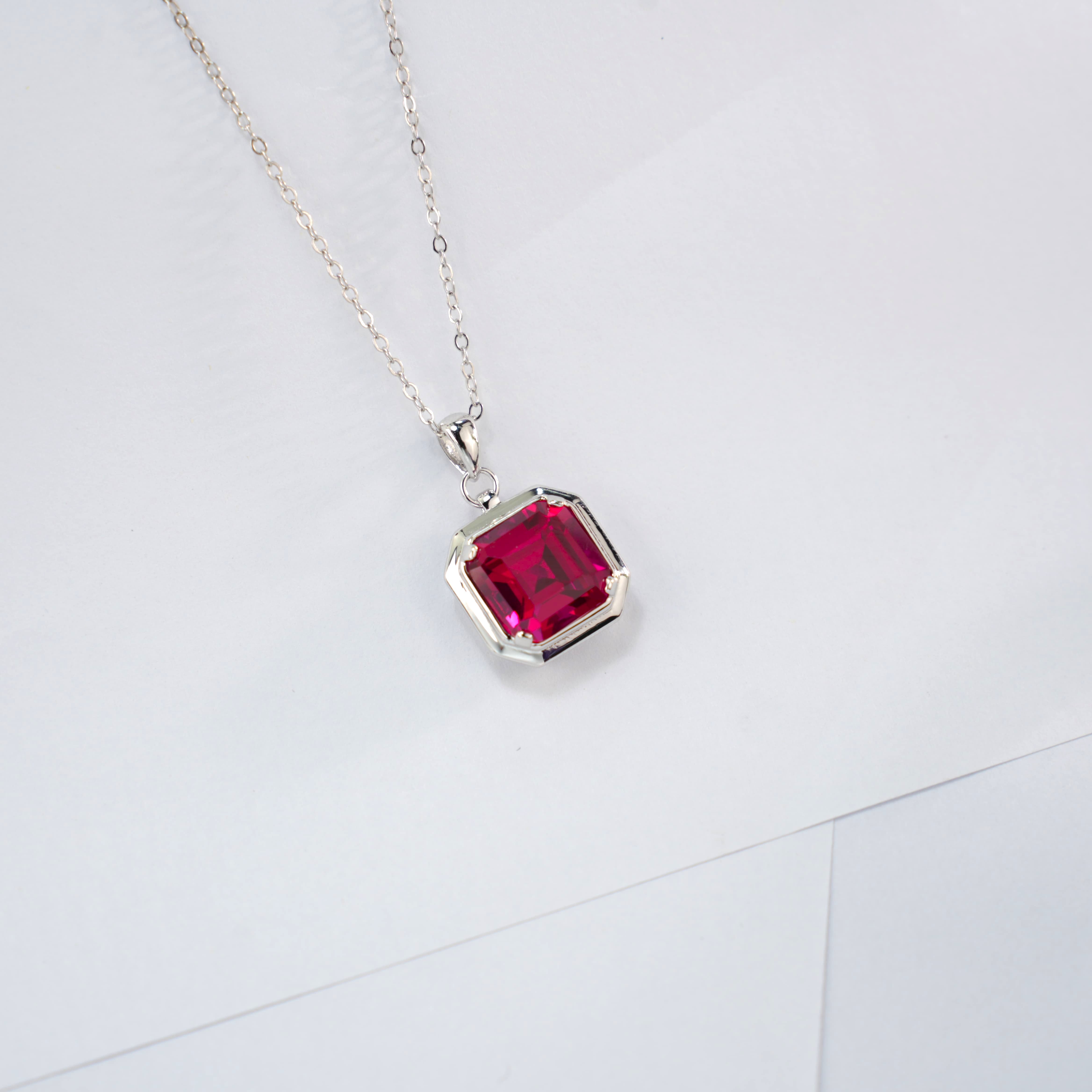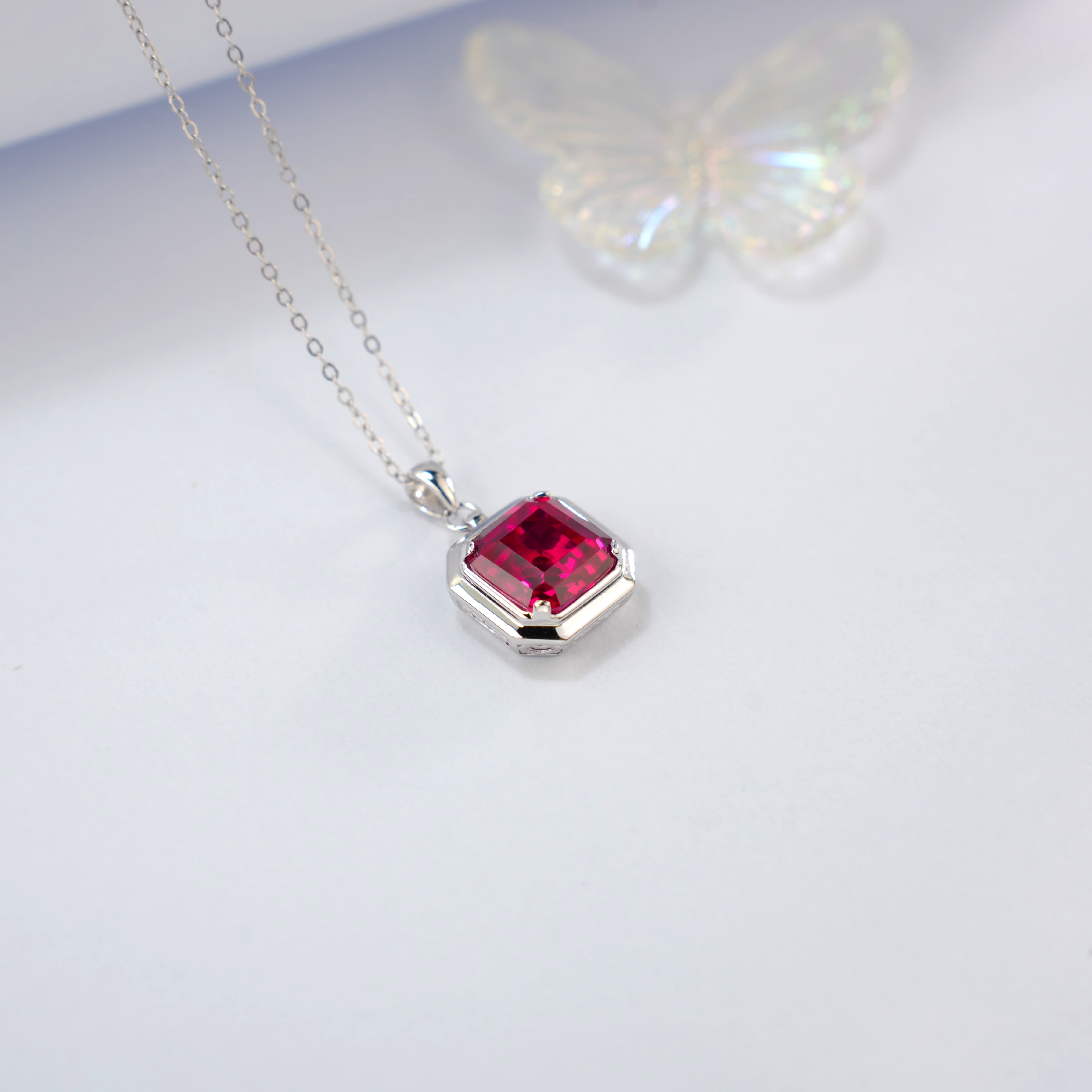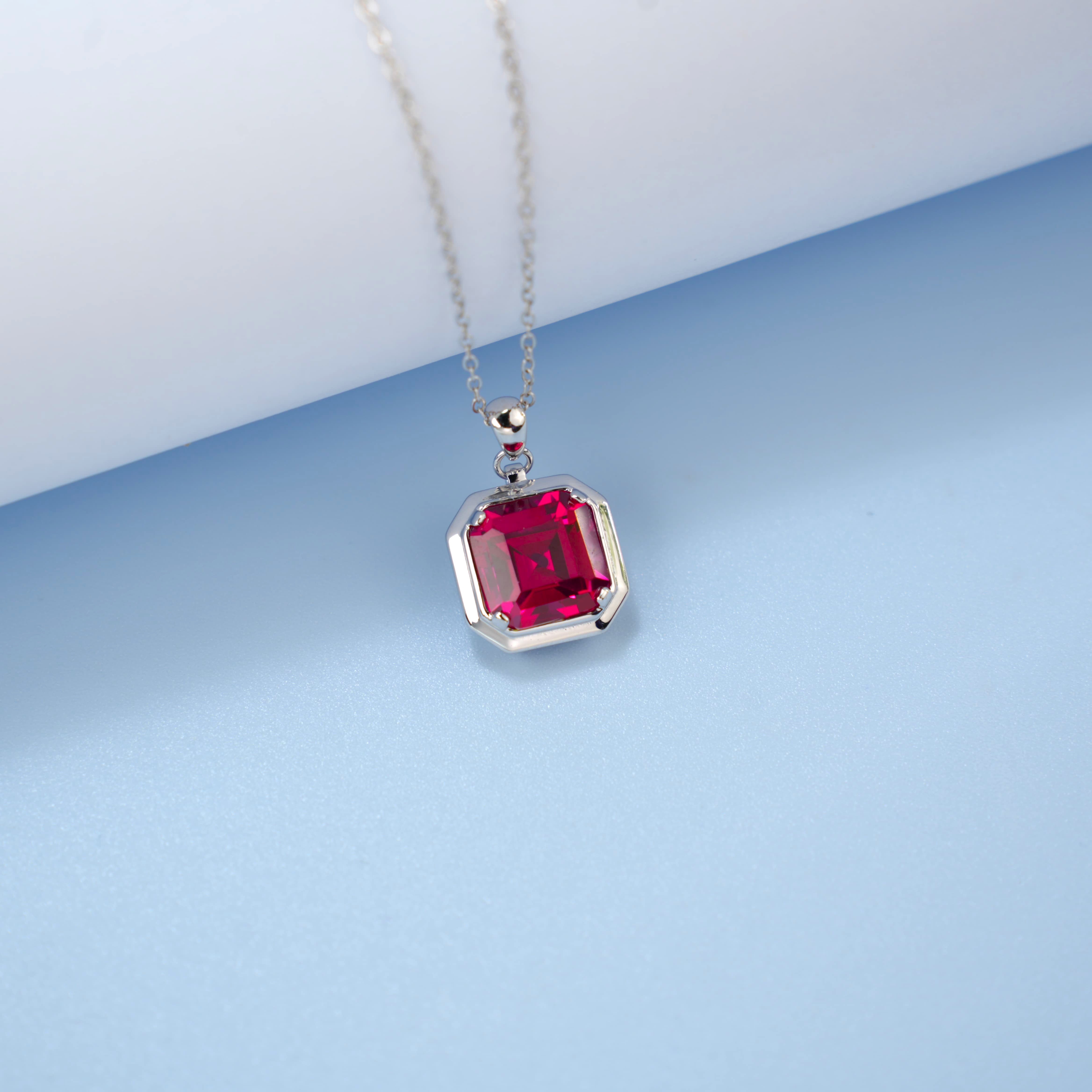 925 银培育红宝八边方钻项链(ZHF-P1121R)