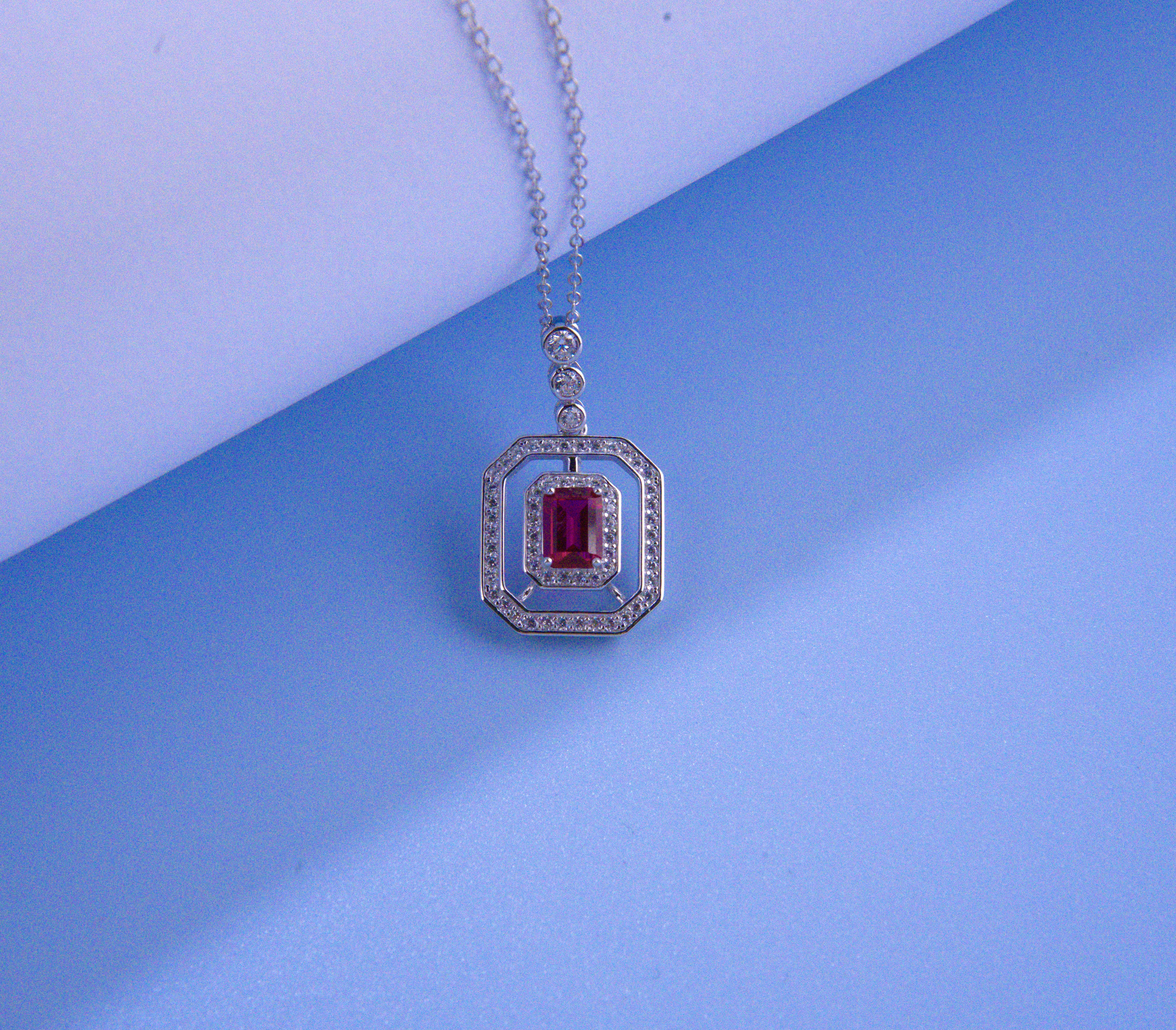 八边形双层镶钻设计搭配方形红宝,工艺精致且富有复古韵味。红宝色泽浓郁,在钻石的衬托下更显典雅质感,日常佩戴时,无论是搭配复古风的西装外套,还是简约的连衣裙,都能为造型增添一份复古精致感,是打造复古风格造型的点睛配饰,也能展现出佩戴者对复古美学的独特品味。