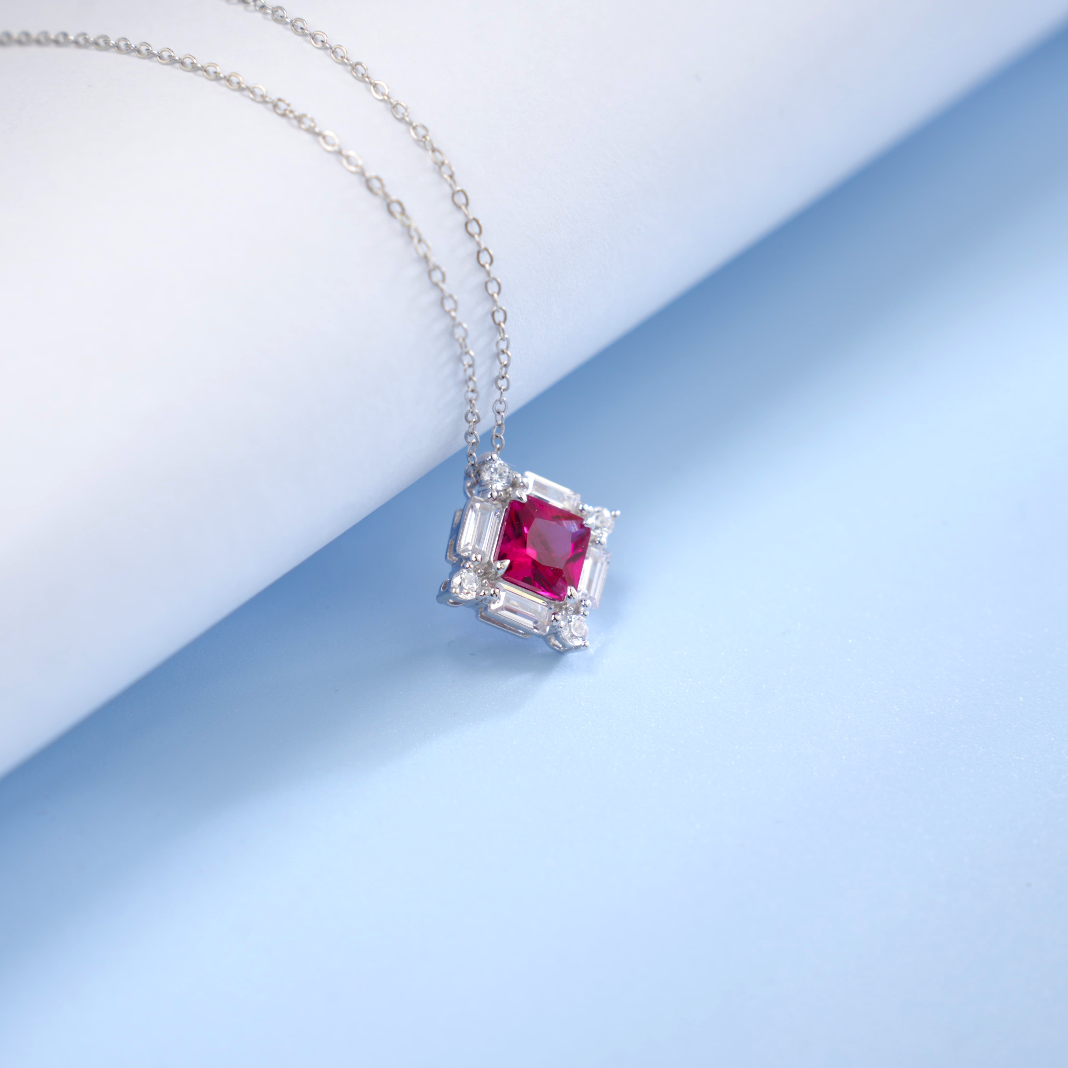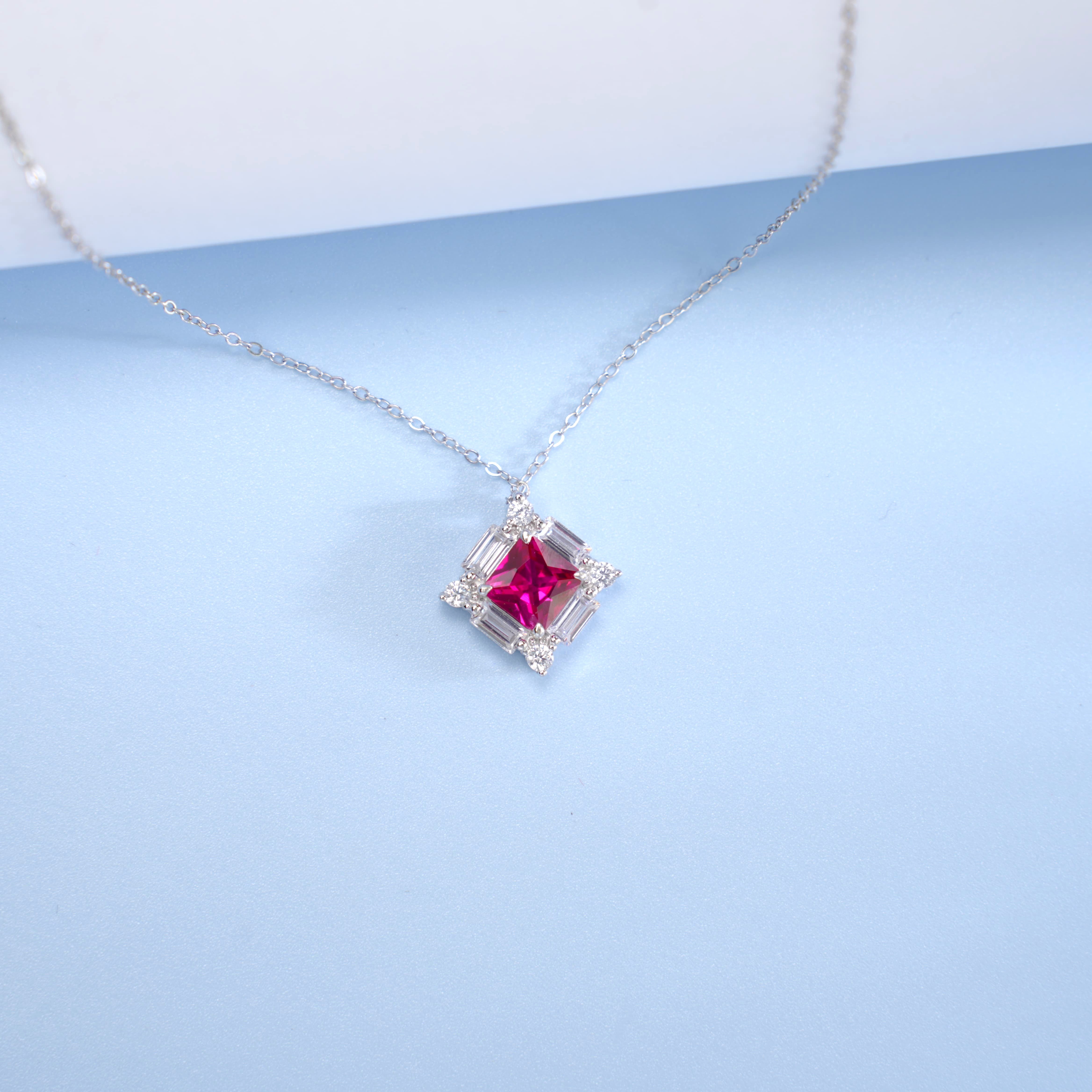 925 银培育红宝方钻星芒项链(ZHFP0591R)