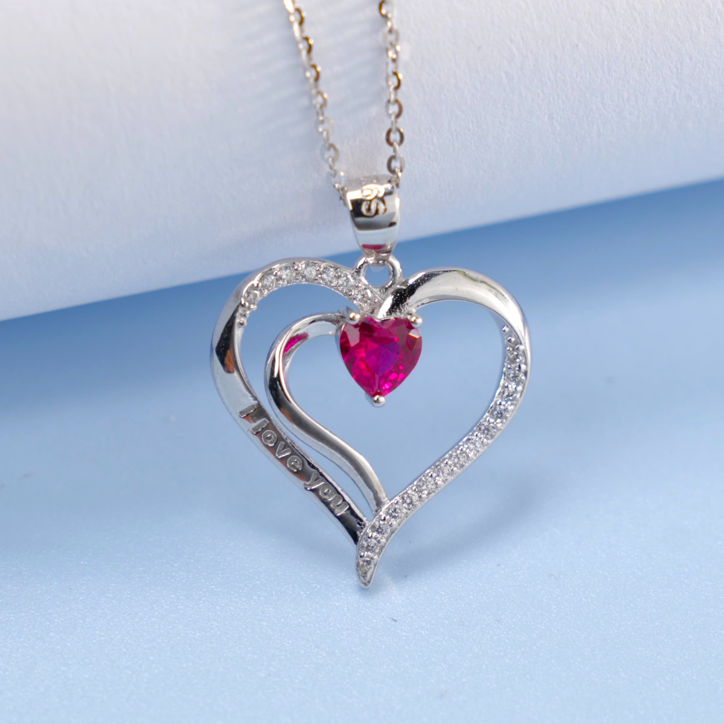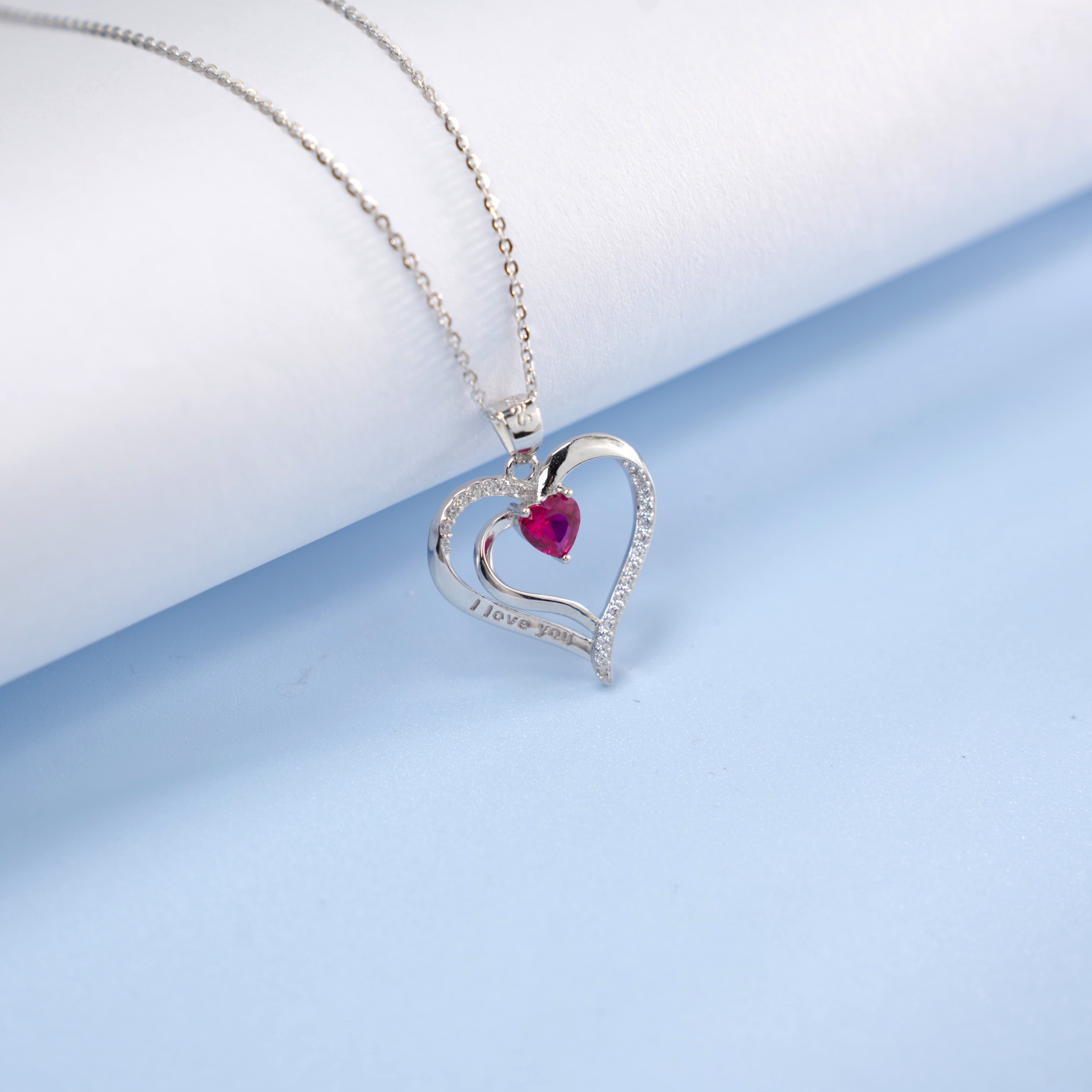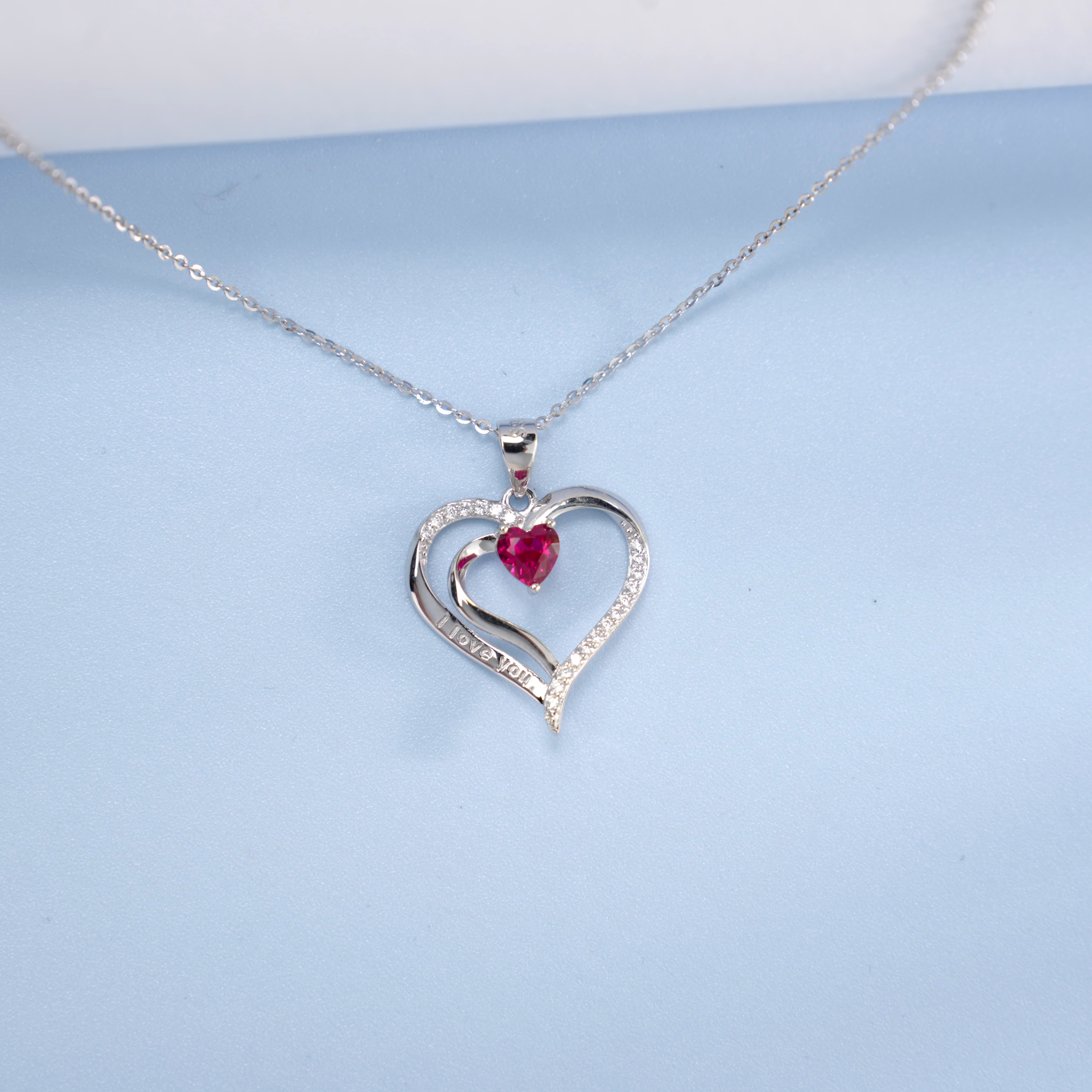 925 银培育红宝双心项链