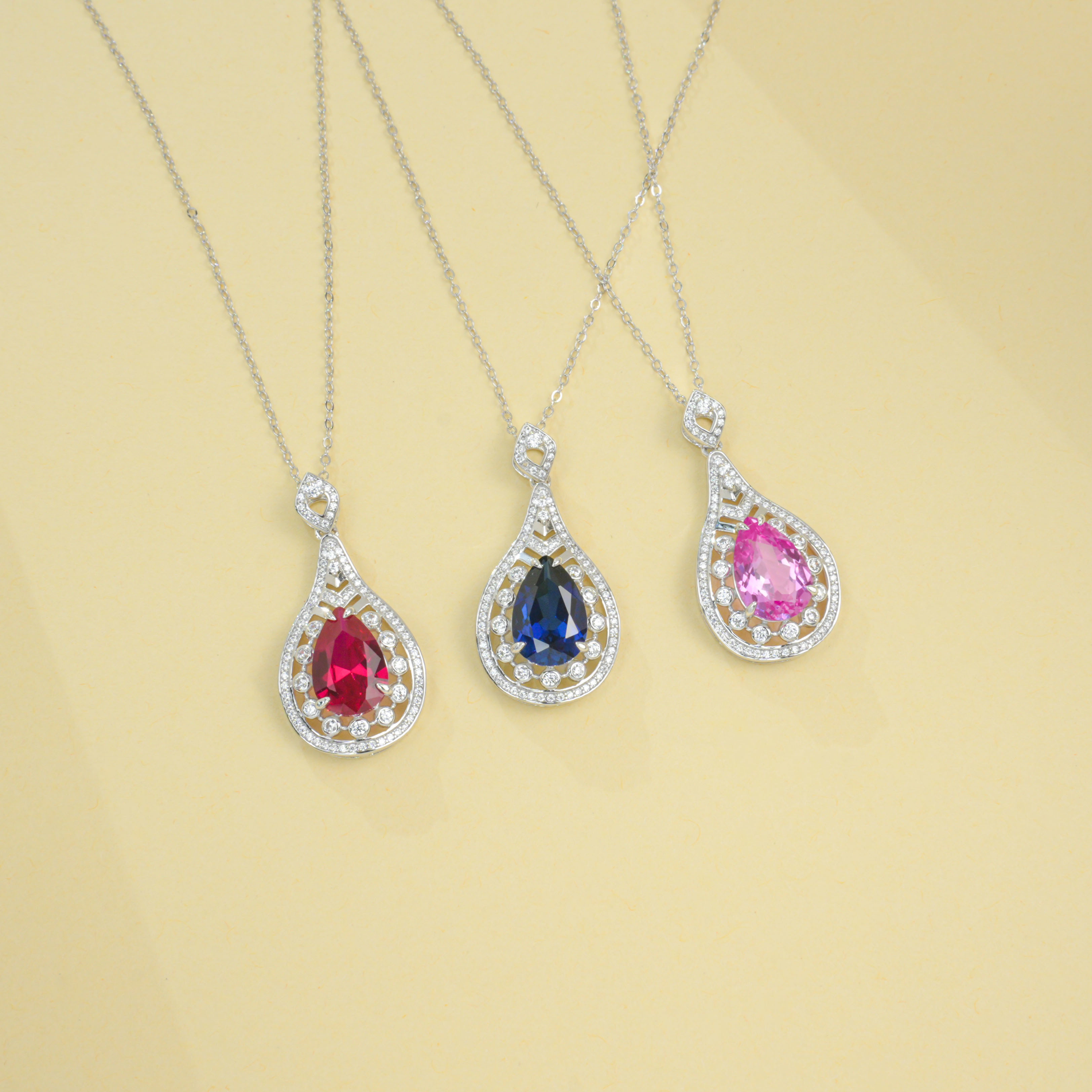 这款 925 银培育蓝宝项链,以水滴设计和奢华宝石,重新定义轻奢珠宝的艺术体验,是收藏级质感与重要场合佩戴的完美平衡,自留彰显品味高度,送礼传递重磅心意。
