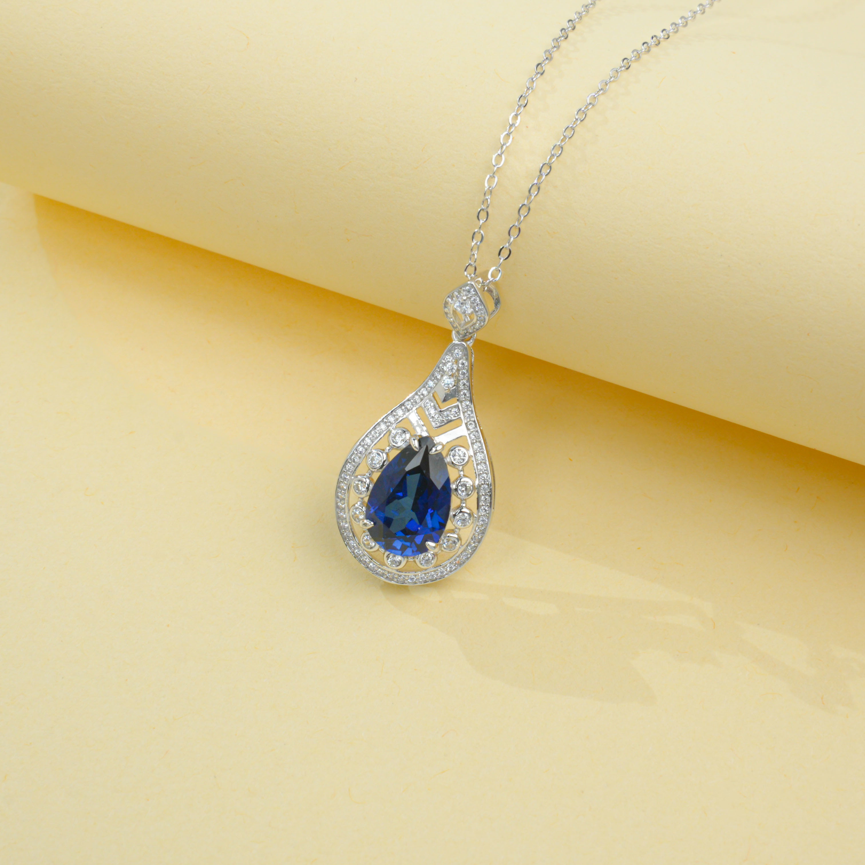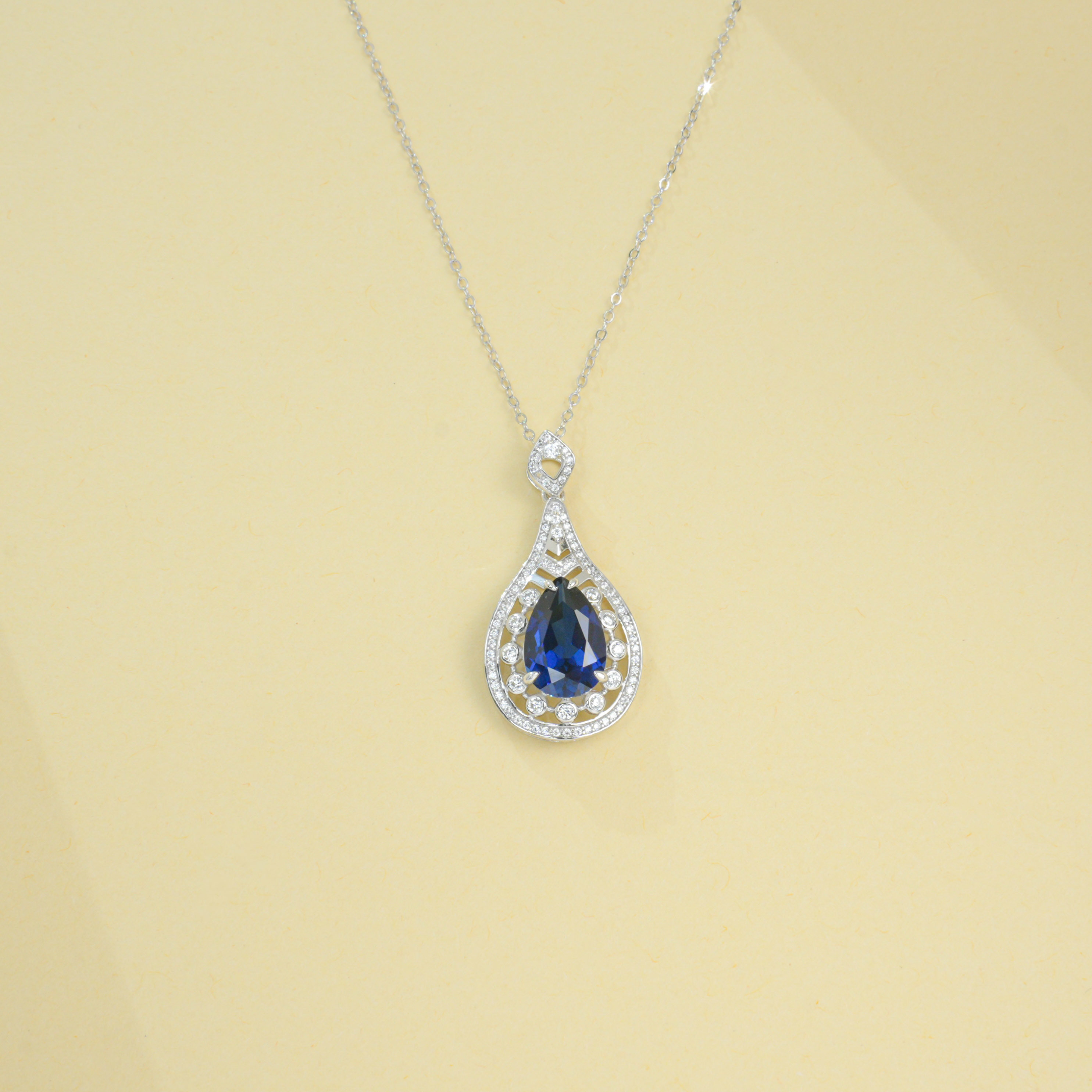 925 银培育蓝宝项链|3.9CT 水滴宝石 颈间的轻奢艺术盛宴
