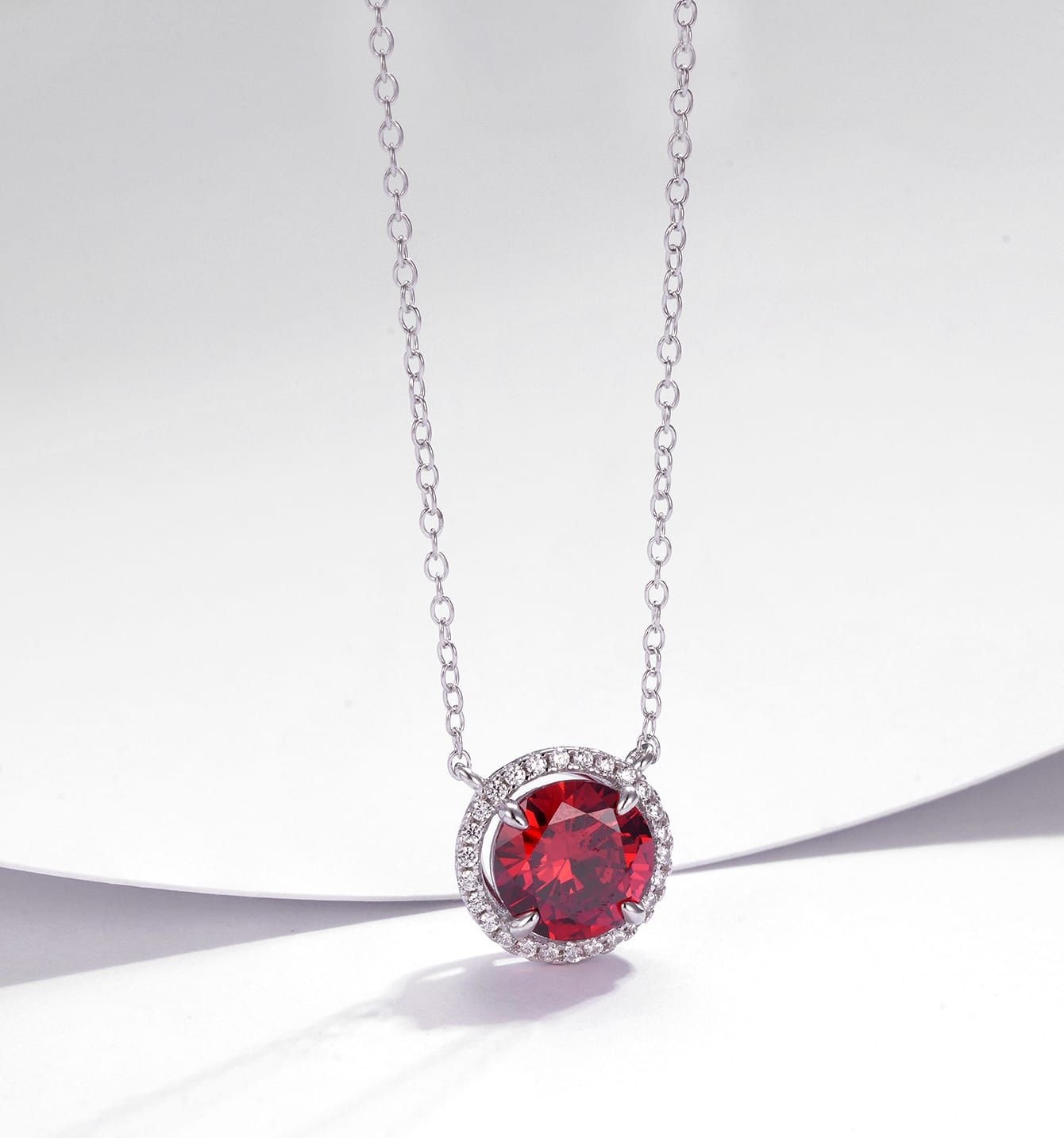 925 银培育红宝圆钻围镶项链(ZHF-XYP07R)