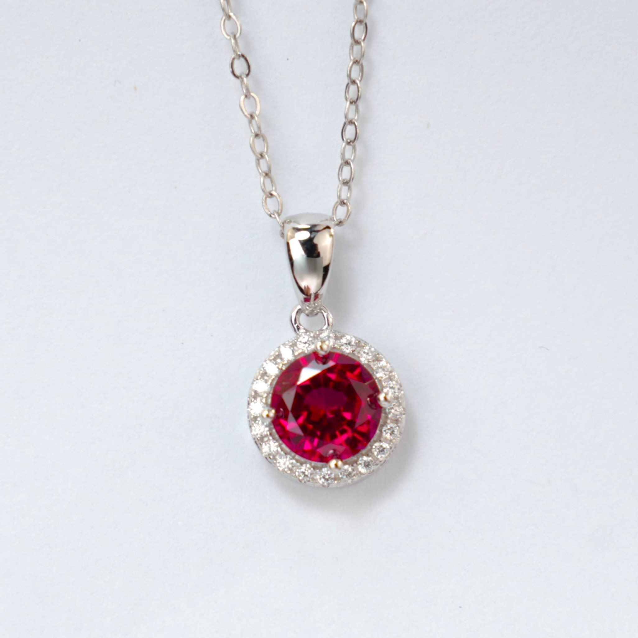 925 银培育红宝圆钻围镶项链(ZHF-002211R)